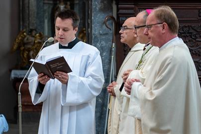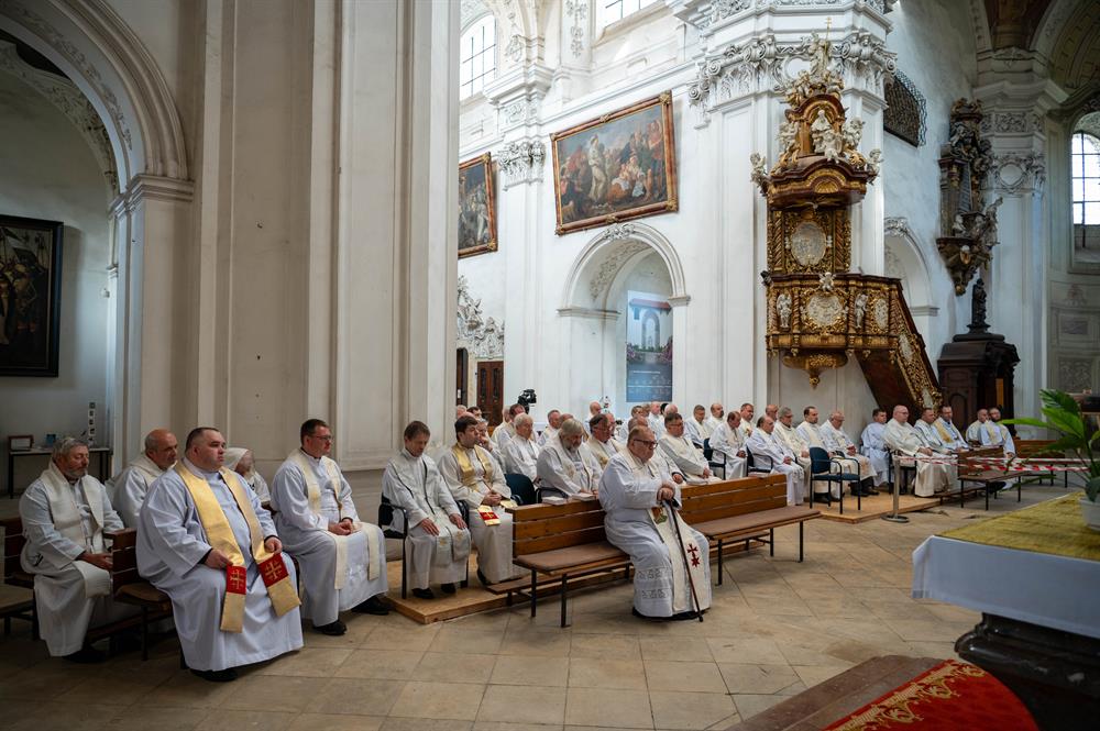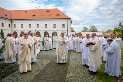 Kněží a jáhni na pouti v Doksanech - promluva biskupa a přednáška opata