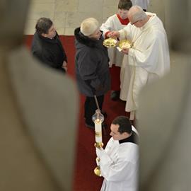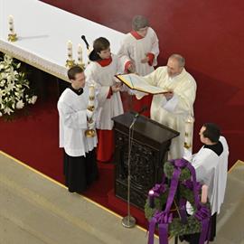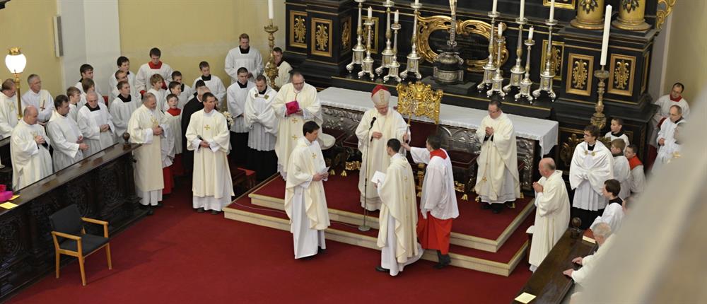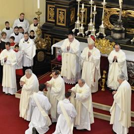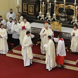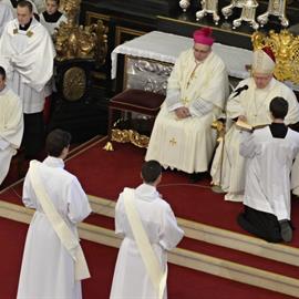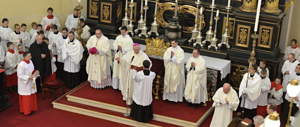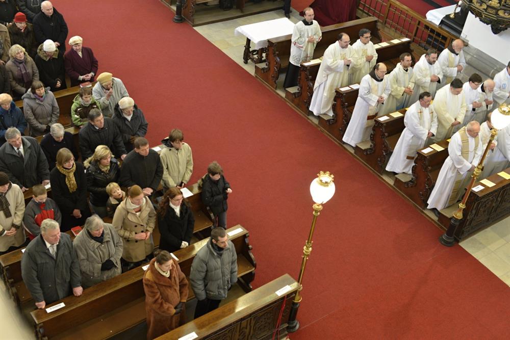 kněžské svěcení, novokněží Ing. Pavel Morávek a Mgr. Josef Peňáz, diecézní biskup Mons. Jan Baxant, 8. prosince 2012, 10.00 hodin, katedrála sv. Štěpána, Litoměřice
