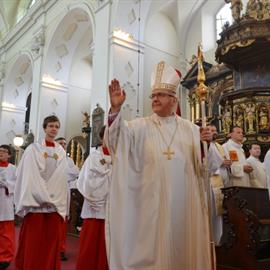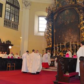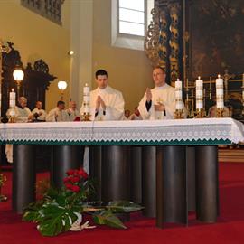kněžské svěcení, novokněží Mgr. Štěpán Smolen a Mgr. Lukáš Hrabánek, diecézní biskup Mons. Jan Baxant, 27. června 2015, 10.00 hodin, katedrála sv. Štěpána, Litoměřice