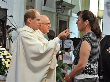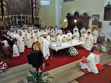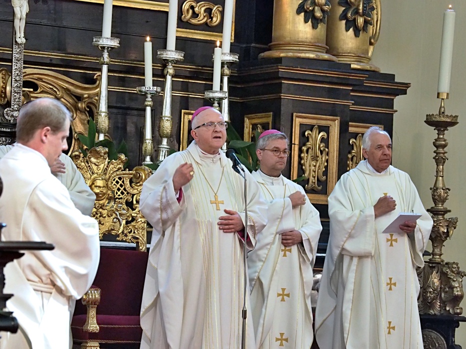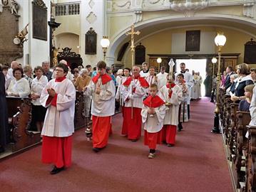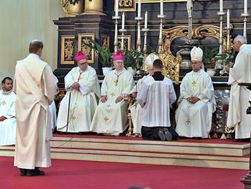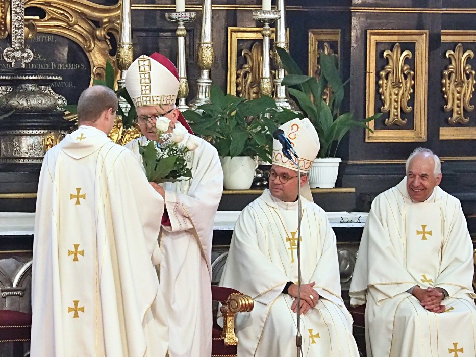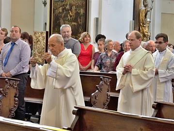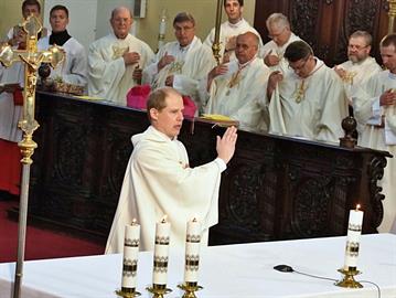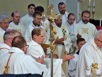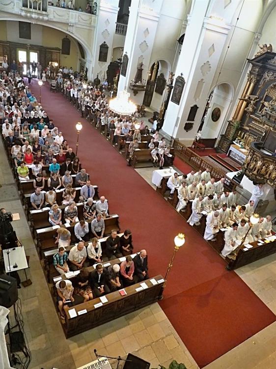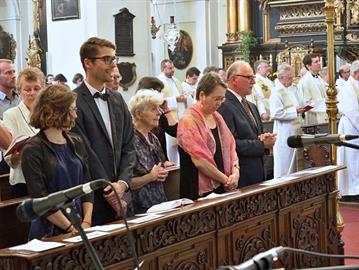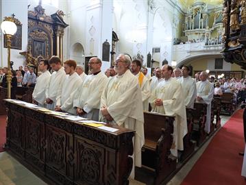 Slavnost kněžského svěcení jáhna Jiřího Landy, litoměřického rodáka a farníka, kterého litoměřický biskup Mons. Jan Baxant vysvětil pro Schönstattské hnutí, kde bude Jiří Landa dále působit v kněžské službě, 24. června 2017, katedrála sv. Štěpána, Litoměřice