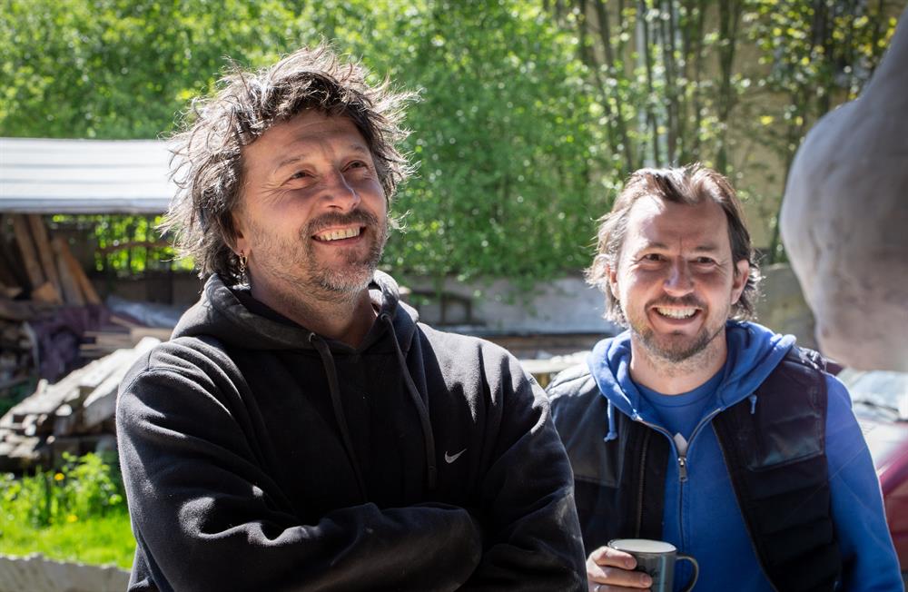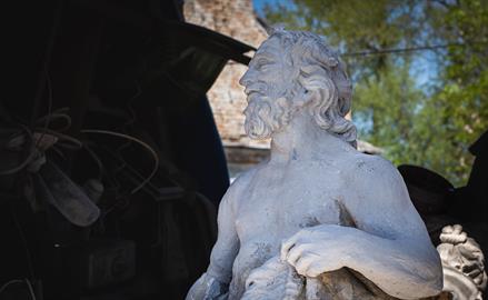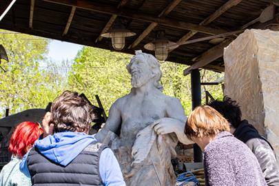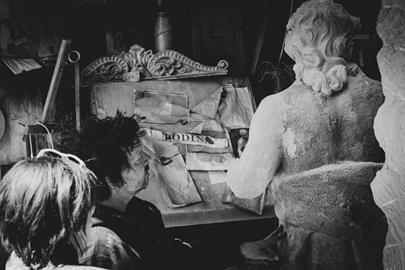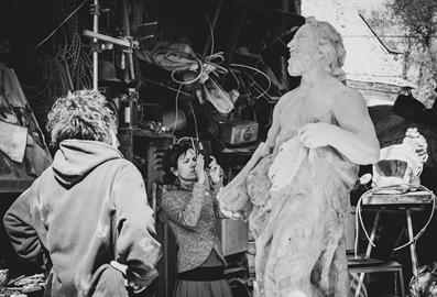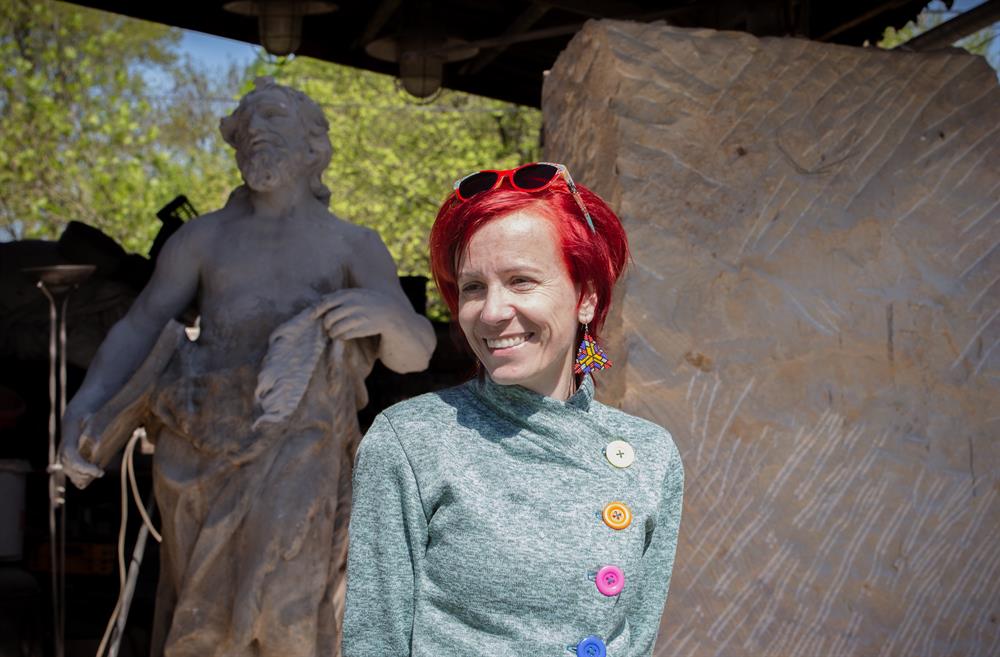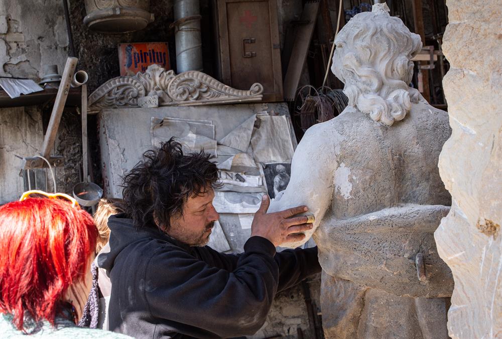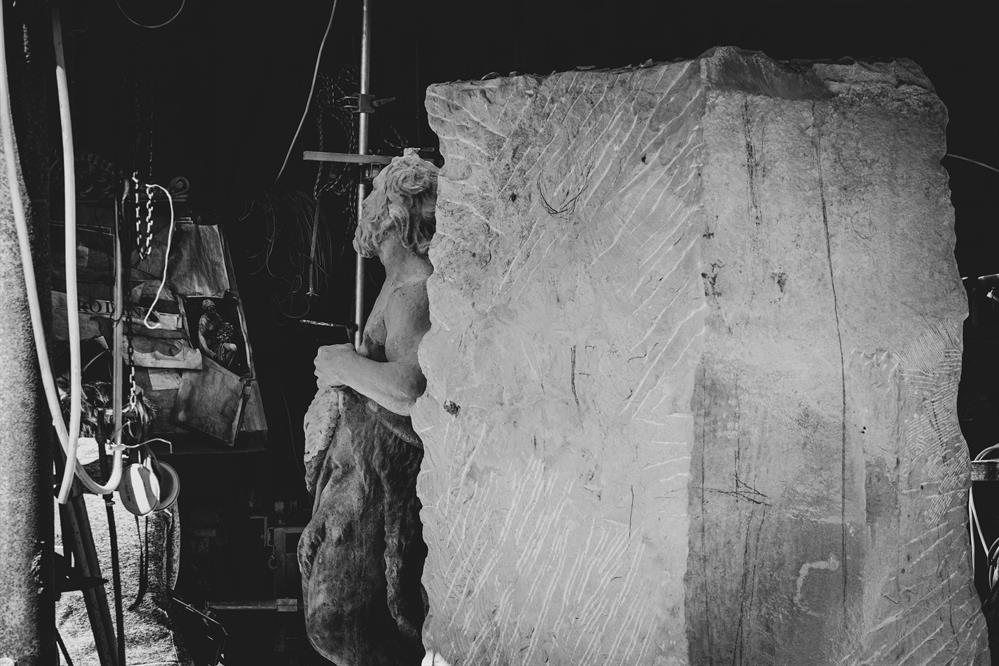 Práce na kopii pískovcové sochy sv. Jana Křtitele z průčelí baziliky v Jablonném v Podještědí.