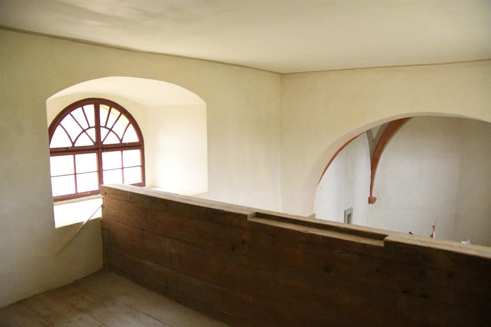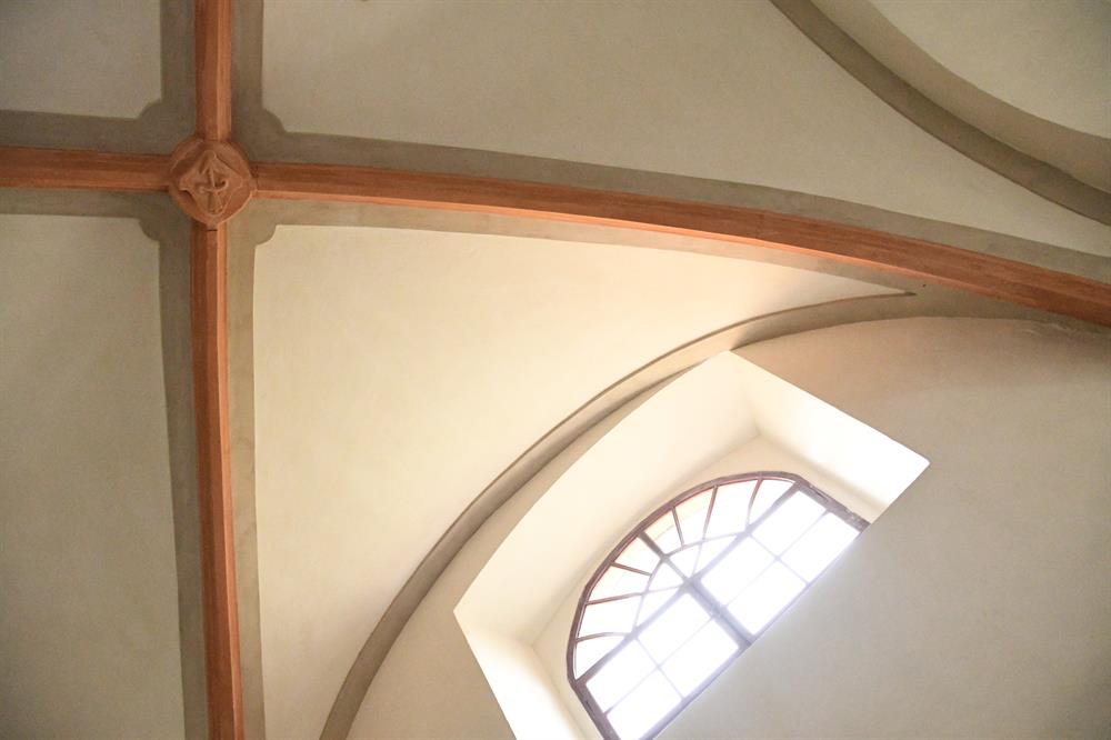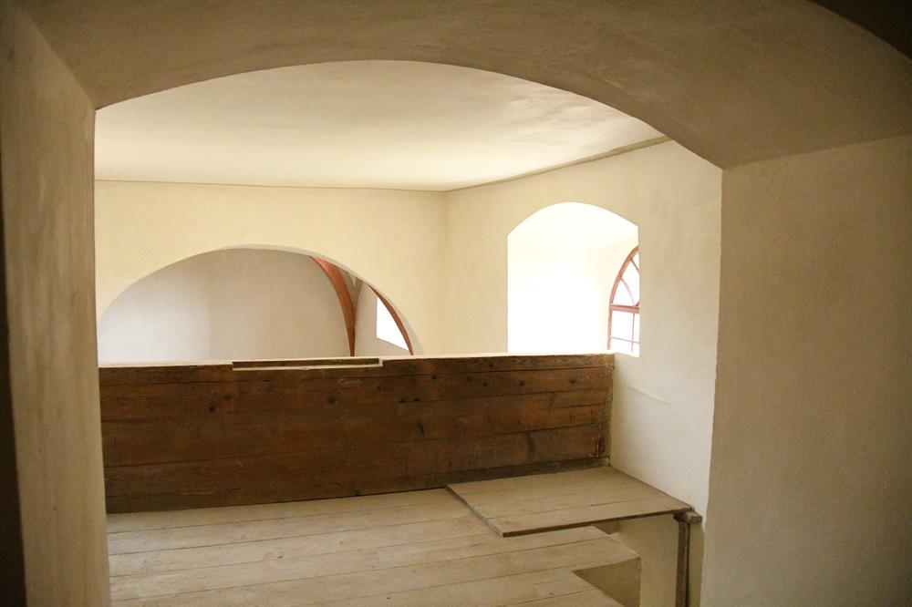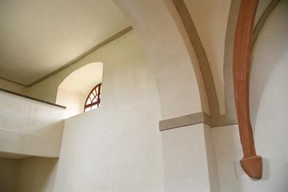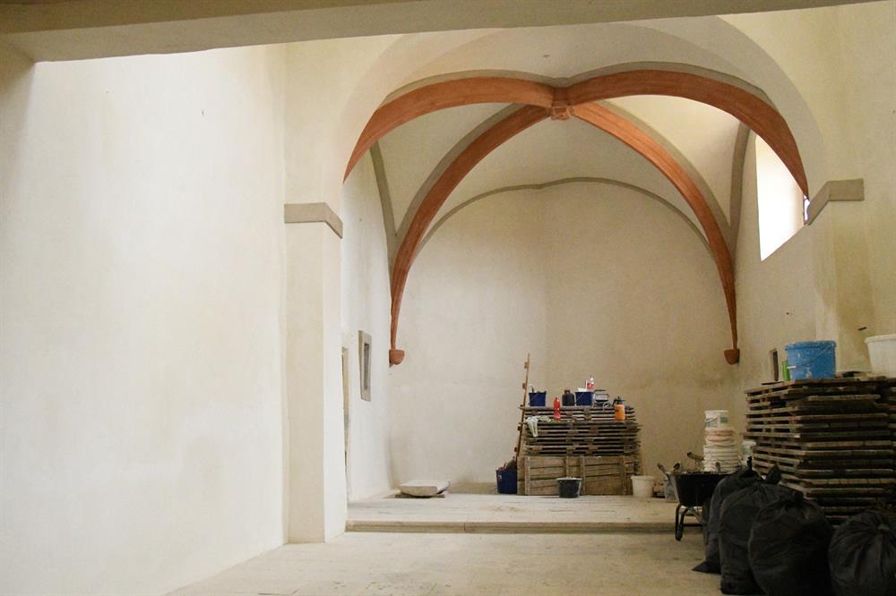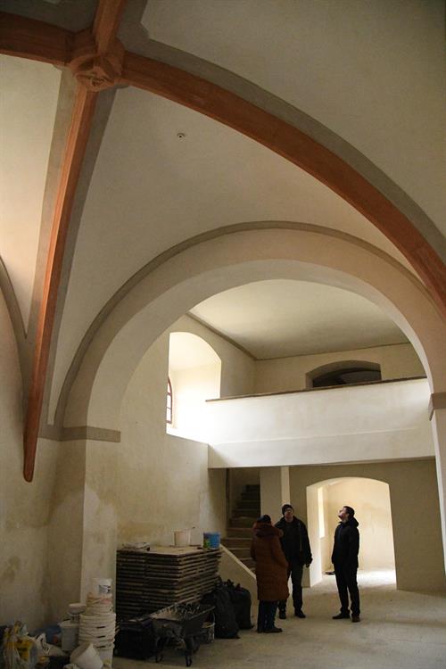 ve vnitřních prostorách. Velmi povedená je obnova stropu s křížovou klenbou
