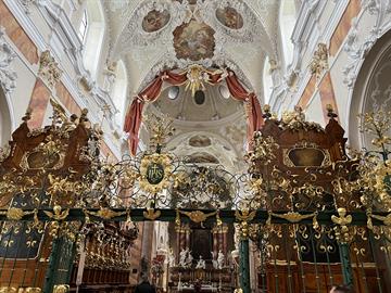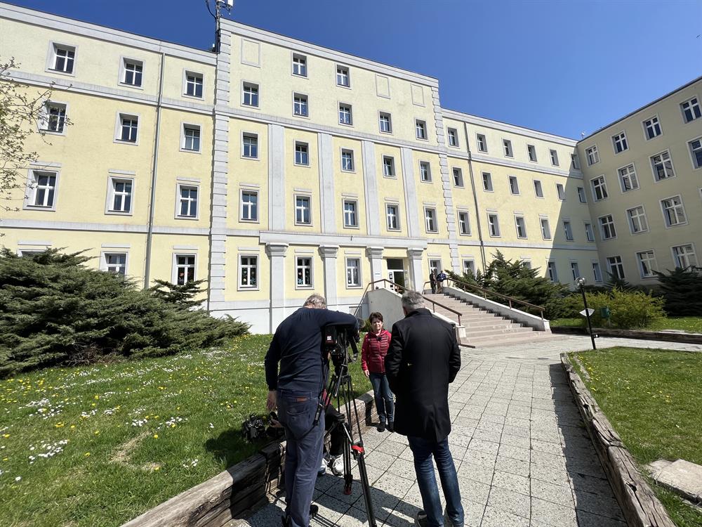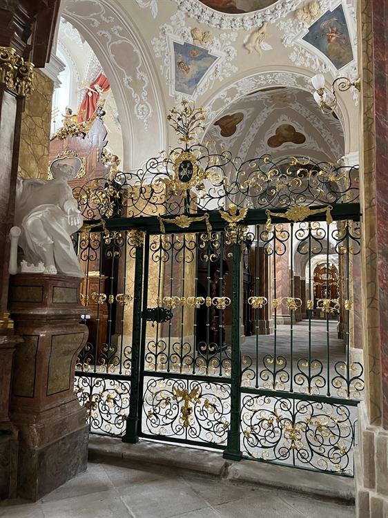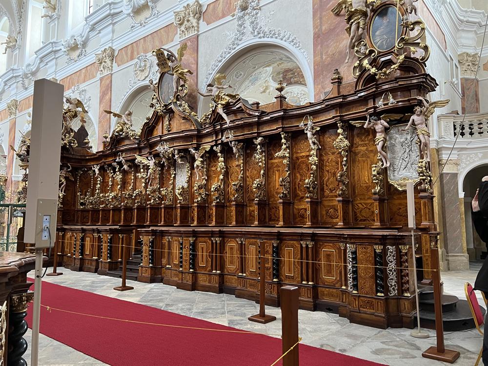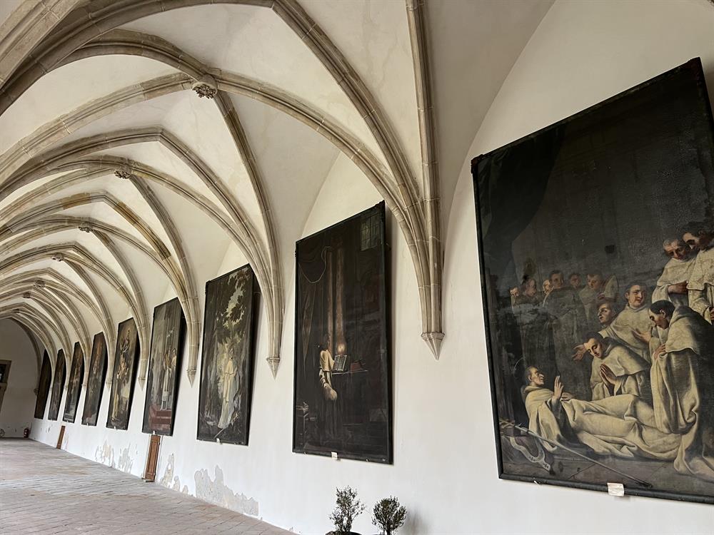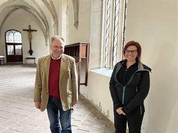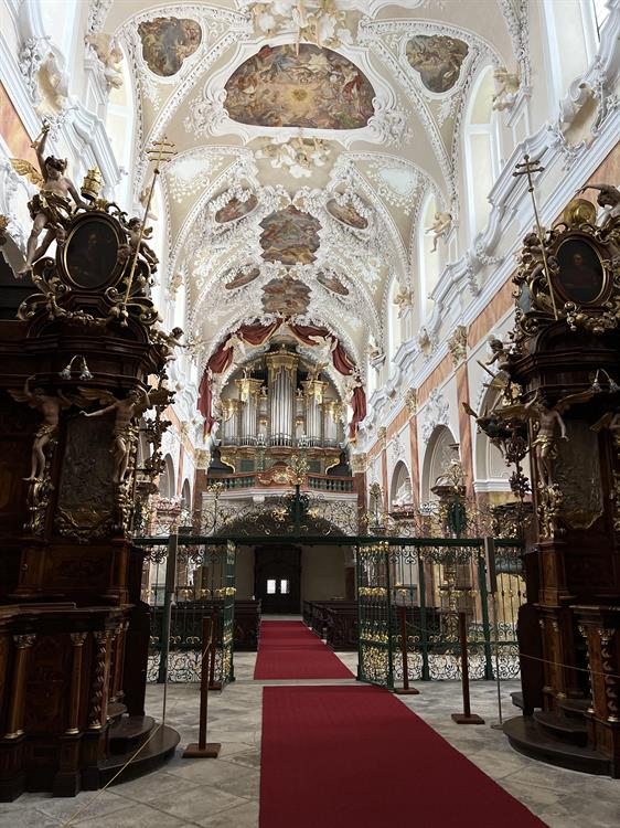 televizi následně provedl klášterem a obnoveným opatským kostelem Nanebevzetí