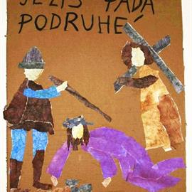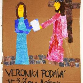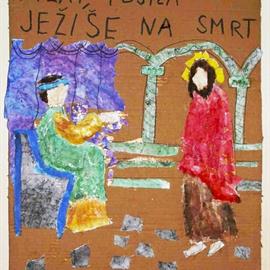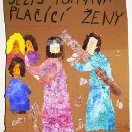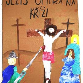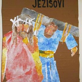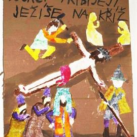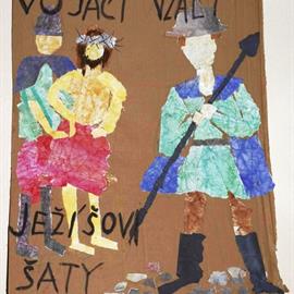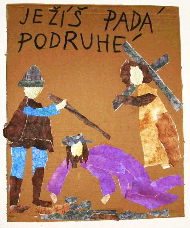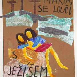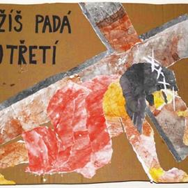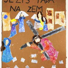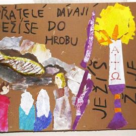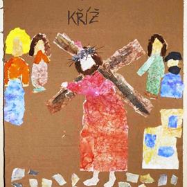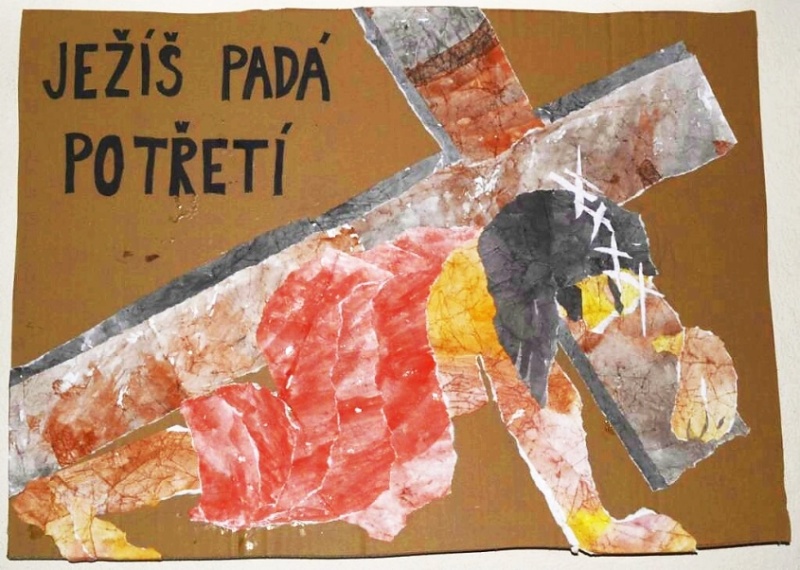 křížová cesta vytvořená s dětmi pro děti pod vedením Jolany Těmínové, pastorační asistentky, ručně barvený papír, březen 2013, kostel sv. Antonína Paduánského, Liberec-Ruprechtice