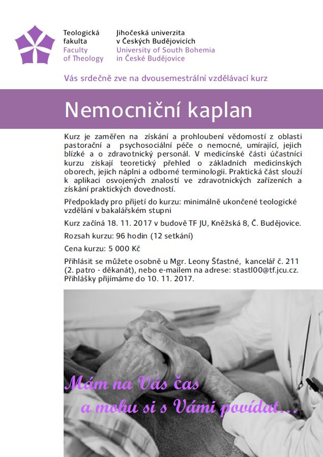 Budějovicích otevírá druhý ročník kurzu „Nemocniční kaplan“. Kurz je určen