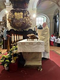 1. května památkou sv. Josefa Dělníka začíná měsíc Panny Marie. Farní i řeholní společenství se obvykle po mši nebo i přede mší svatou modlí mariánské litanie. Nejinak tomu bylo i v Litoměřicích, kde se 1. května 2023 na konci mše svaté pomodlili věřící spolu s Mons. Martinem Davídkem bavorské litanie před sochou Panny Marie, která do Litoměřic byla převezena ve 2. polovině 20. století z Lorety v blízkých Žitenicích. Ať “májové” pobožnosti opět naplní radostí lidská srdce na přímluvu té, skrze níž přišel na svět Spasitel. Svatá Maria, oroduj za nás!