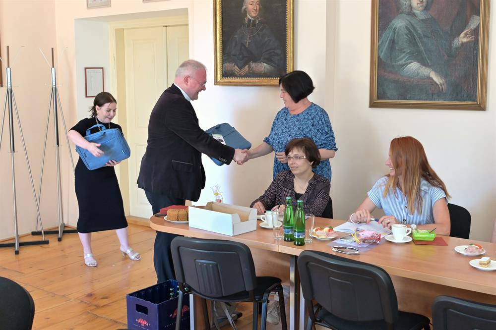 V pondělí 16. května 2022 se od 10 hodin konalo setkání vikariátních účetních. Setkání začalo blahopřáním hlavní účetní Ing. Ludmile Sedláčkové, která v neděli 15. května oslavila významné životní jubileum. V průběhu setkání pak předal generální vikář Mons. Martin Davídek vikariátním účetním nové notebooky, které potřebují ke své práci. Blahopřejeme oslavenkyni a vyprošujeme mnoho Božích milostí do dalších let.