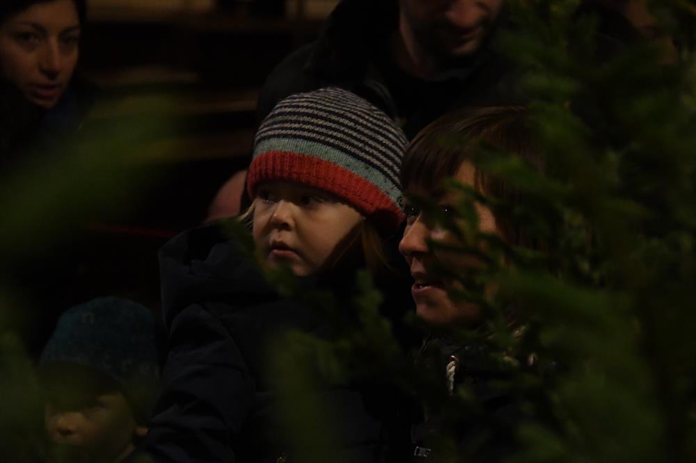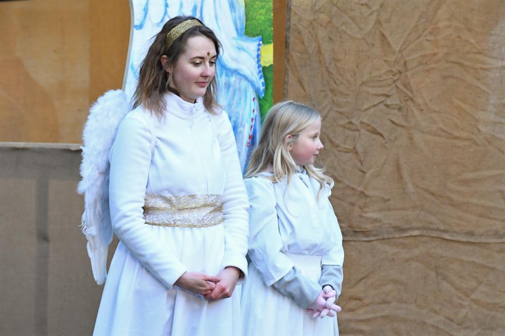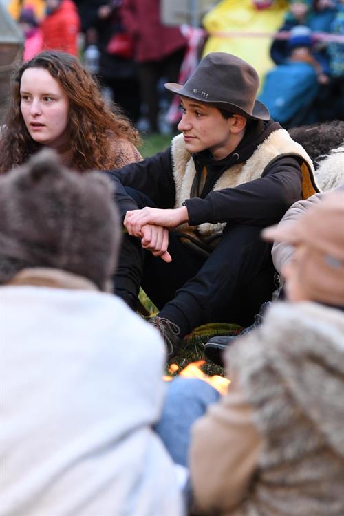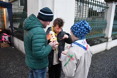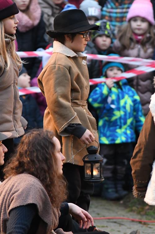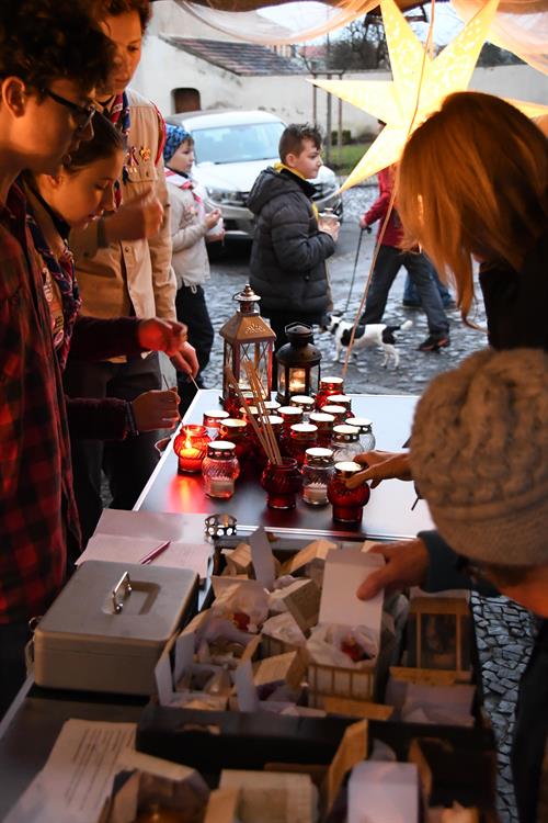 Bohušovická schola. Během představení si lidé mohli zapálit od skautů betlémské
