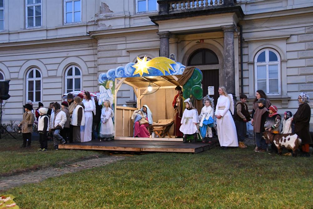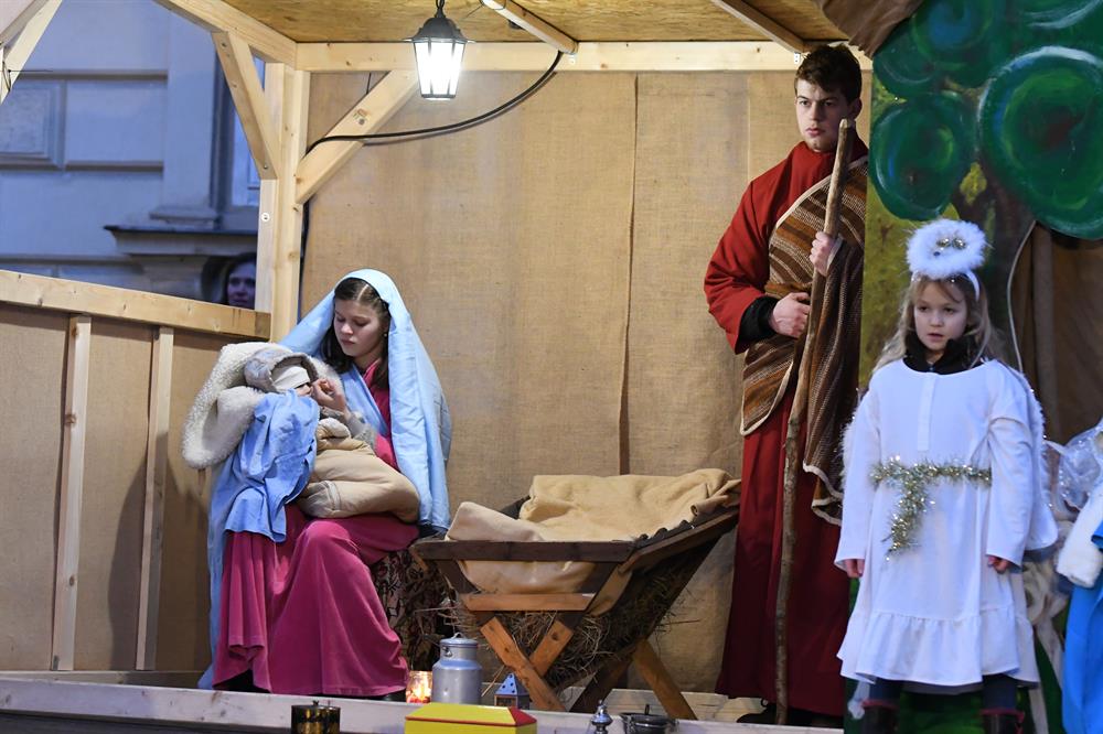 Betléma s příběhem narození Ježíše Krista, jíž vánočními koledami doprovázela