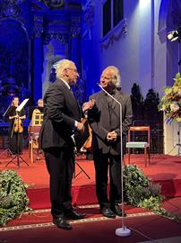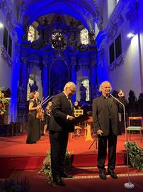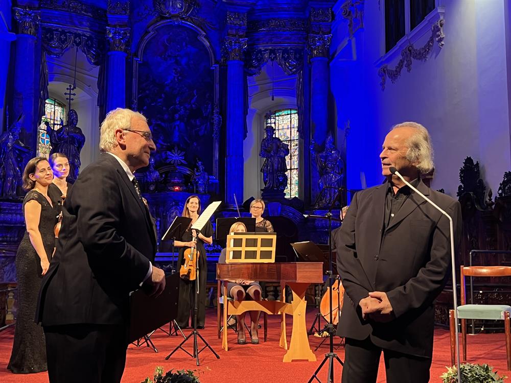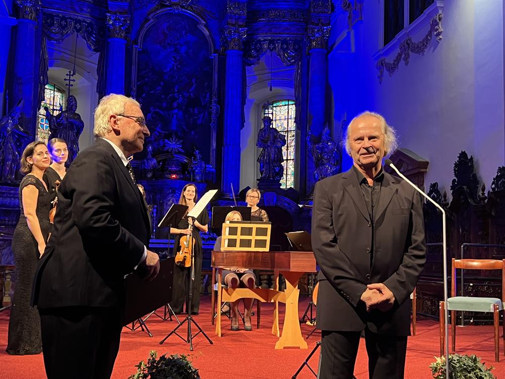 Jan Baxant a po něm houslový mistr Václav Hudeček, který představil orchestr i