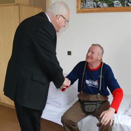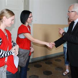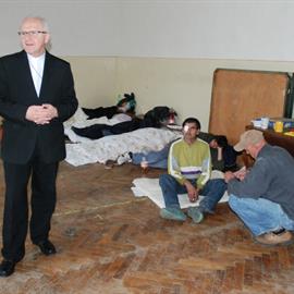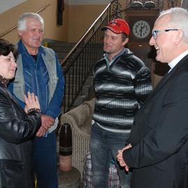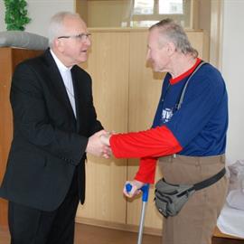 návštěva evakuovaných, litoměřický biskup Mons. Jan Baxant, 6. června 2013, Diecézní dům kardinála Trochty, Litoměřice