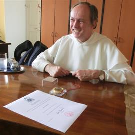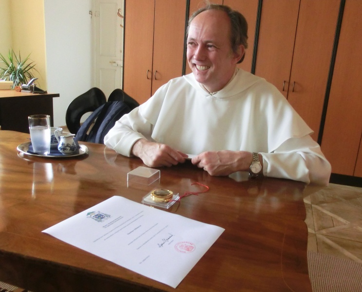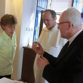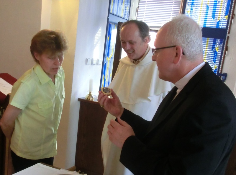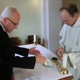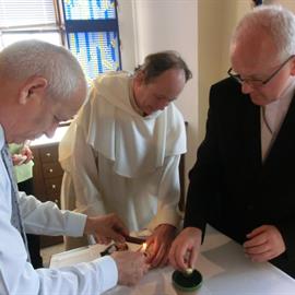 vydání potvrzení o původu ostatku (tzv. autentika), zapečetění nového relikviáře, litoměřický biskup Jan Baxant, P. Jan Rajlich OP, 6. srpna 2012, biskupská rezidence, Litoměřice