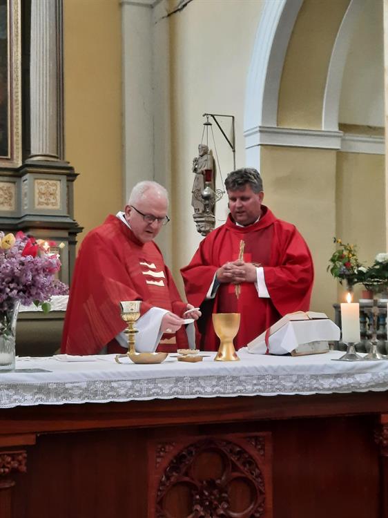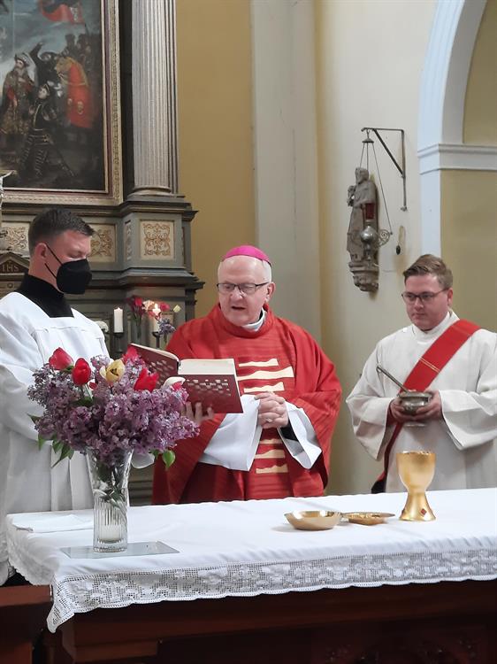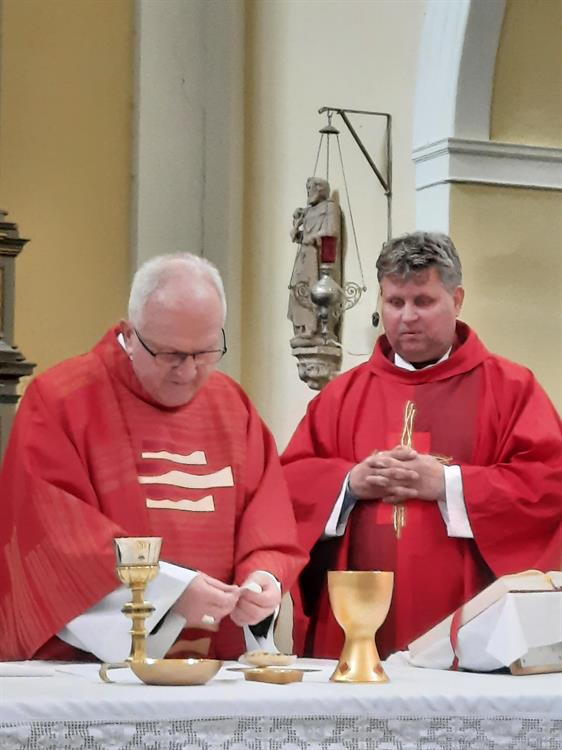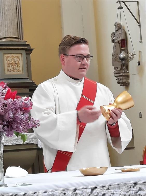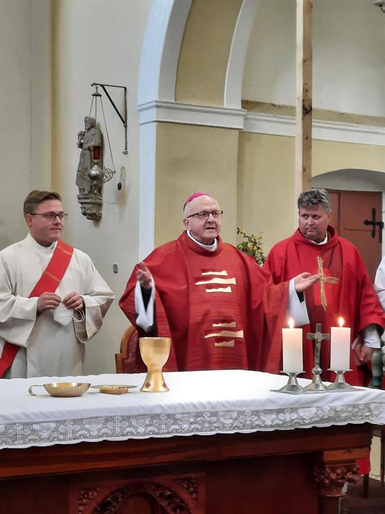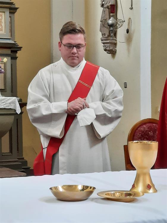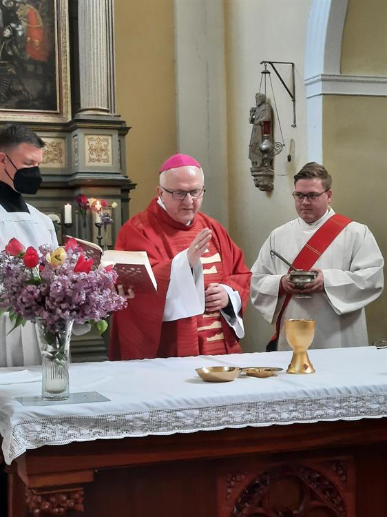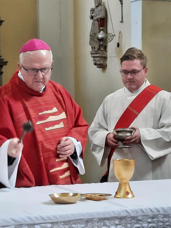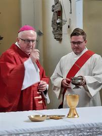 V sobotu 22. května 2021 navštívil litoměřický biskup Mons. Jan Baxant Dlažkovice a od 16 hodin v místním kostele sv. Václava sloužil mši svatou. Koncelebrantem byl R.D. Michael-Philipp Irmer. Biskup při bohoslužbě požehnal mešní kalich určený pro jáhna Christophera Cantzena, který bude, dá-li Pán Bůh, již v brzké době vysvěcen na kněze.
