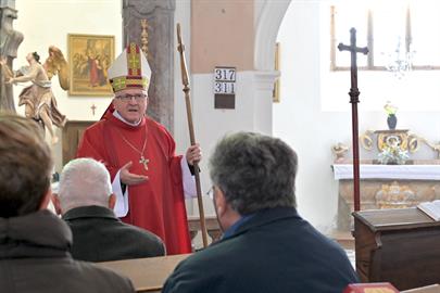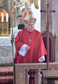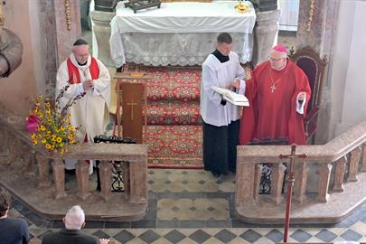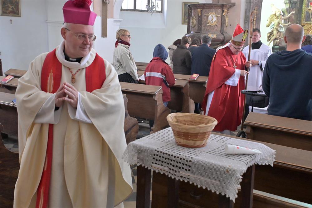 V neděli 18. září 2022 od 10.30 hodin navštívil litoměřický biskup Mons. Jan Baxant kostel Povýšení svatého Kříže na Levíně, kde sloužil poutní mši svatou. Koncelebrantem byl generální vikář Mons. Martin Davídek. Levínský kostel je známý tzv. „Levínským kocourem“, což je zazděný klenební svorník ze 13. století s reliéfem lva doplněným nápisem ve staroslověnské cyrilici, který symbolizuje Ježíše Krista a jenž se nachází v interiéru kostela. Od tohoto symbolického zobrazení lva má také městys Levín odvozen svůj název. Po skončení mše svaté byli přítomní pozváni do místní restaurace s názvem „U Levínského kocoura“, kde připravili místní farníci pohoštění.