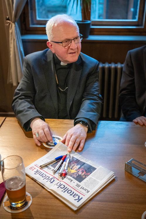 Litoměřický biskup Mons. Jan Baxant, jakožto předseda Rady pro sdělovací prostředky ČBK, pozval ve čtvrtek 11. května 2023 novináře do Biskupského pivovaru v Litoměřicích na číši vína. Za ČBK na akci přijel generální sekretář P. ThLic. Ing. Stanislav Přibyl Th.D., CSsR a CSILic. Monika Klimentová, kteří z Prahy přivezli autobus zástupců katolických a spřátelených medií. Ostatní dorazili svými vozy, místní novináři přišli pěšky. V úvodním projevu litoměřický biskup na základě jedné nové německé knihy, která jej nedávno zaujala, promluvil o jedinečnosti každé lidské osoby před Bohem. Přítomným novinářům pak zdůraznil, že tentokrát do Litoměřic nepřijeli pracovat, ale setkat se a být pospolu u jednoho stolu s číší vína, ke které samozřejmě bylo připraveno i občerstvení.