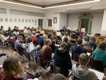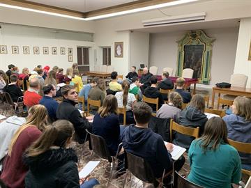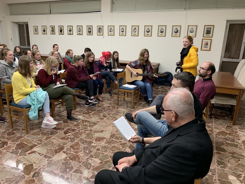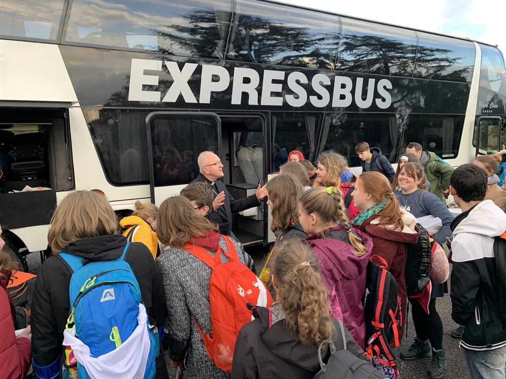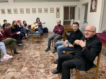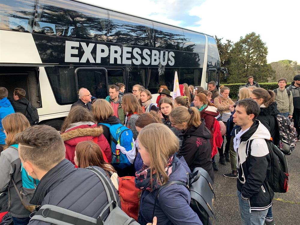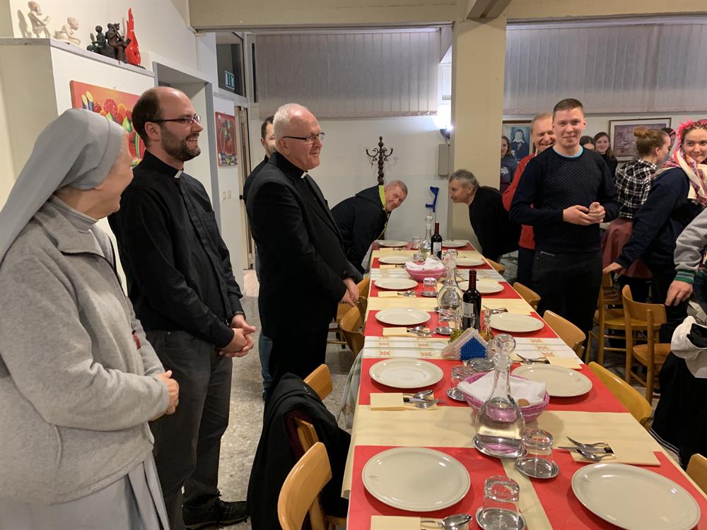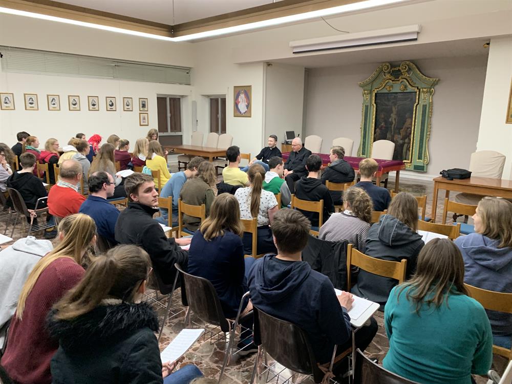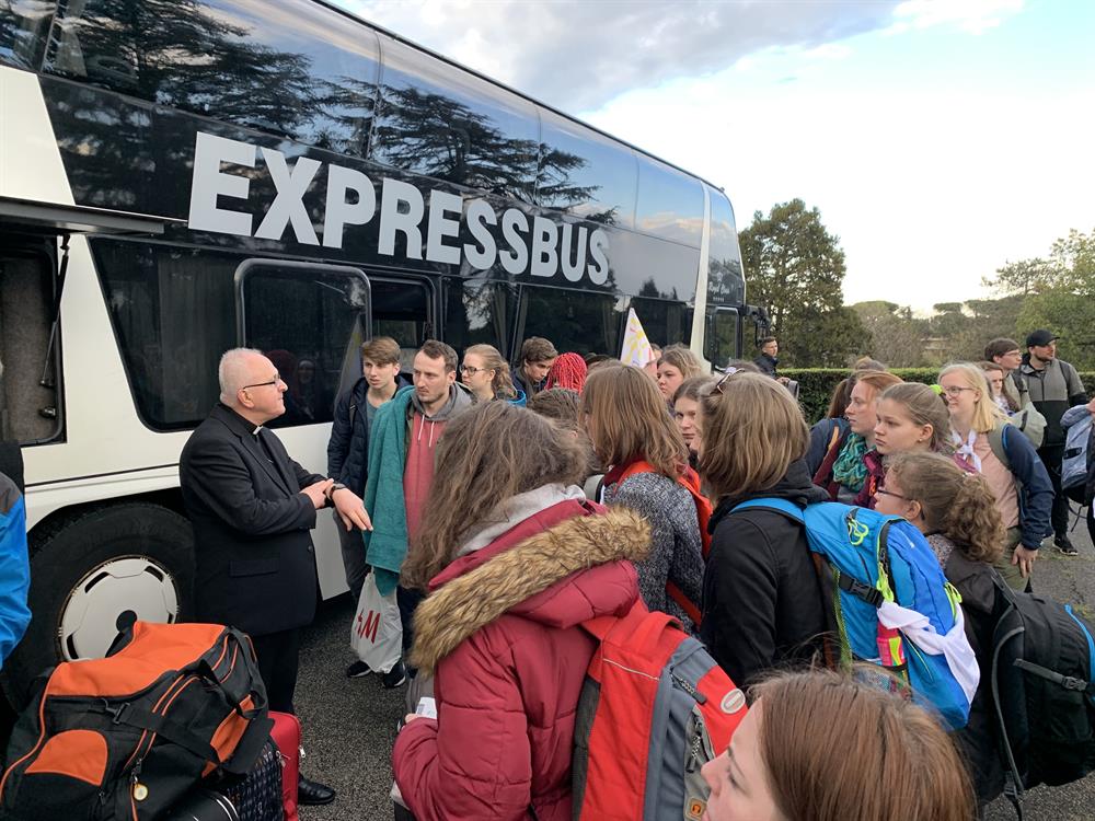 V úterý 26. března 2019 odpoledne přivítal biskup Jan v domě sester kamiliánek v Říme mladé poutníky, které o den dříve vyslal na tuto pouť autobusem z Litoměřic. Sám biskup do Říma přiletěl letadlem a připojil se k programu mladých poutníků v úterý po obědě spolu s generálním vikářem M. Davídkem a asistentem V. Alexou. Pouť pokračovala v domě sester řádu sv. Kamila de Lelis dalším duchovním programem až do nočních hodin.