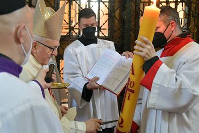 Na Bílou sobotu 3. dubna 2021 sloužil biskup Mons. Jan Baxant velikonoční vigilii v katedrále sv. Štěpána v Litoměřicích. Letošní liturgie byla upravena podle současných pandemických opatření, byl vynechán venkovní oheň a následný průvod. Litoměřický biskup požehnal velikonoční svíci „paškál“ v katedrále, kterou zakrátko naplnila radostná zvěst o Zmrtvýchvstalém Kristu. Ať radost Veliké noci naplní celý svět.