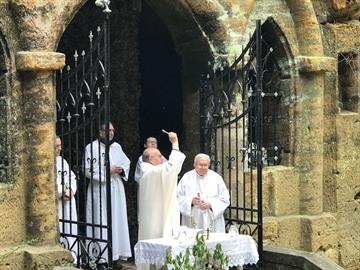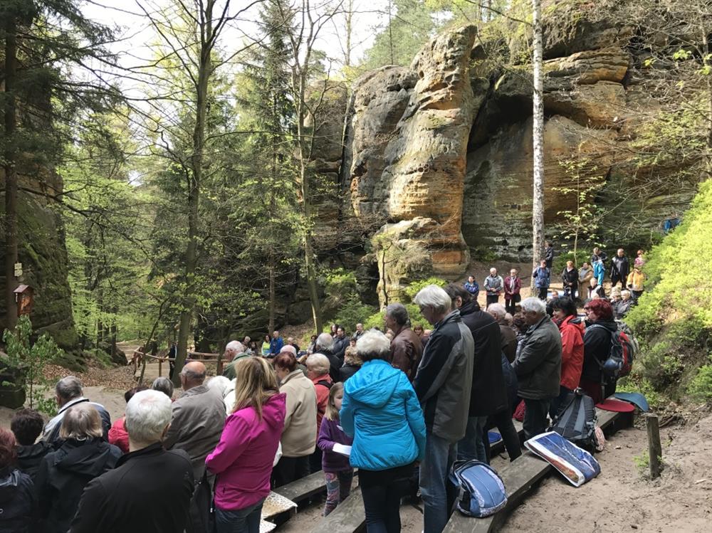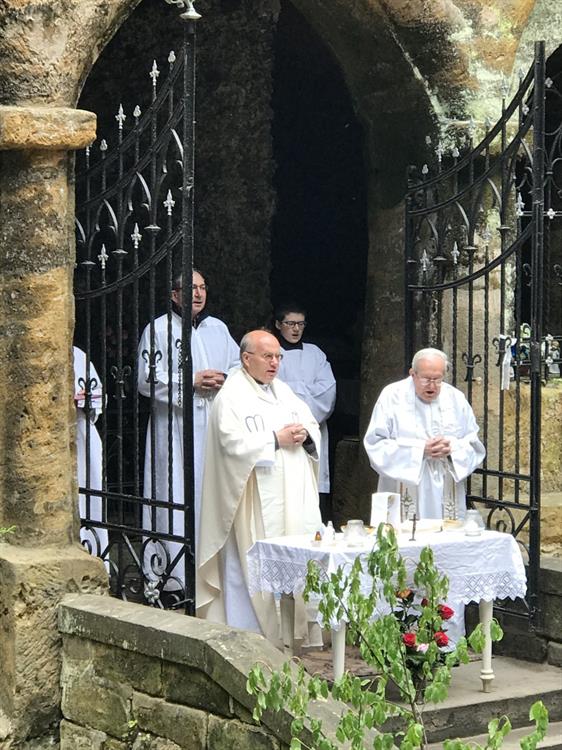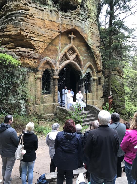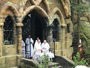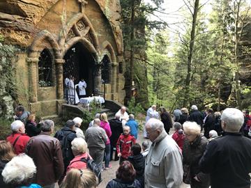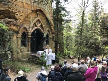 Mariánská mše s kapitulním děkanem Karlem Havelkou, 1. 5. 2017, skalní kaple Panny Marie Lurdské, poutní místo Modlivý důl u Svojkova na Českolipsku