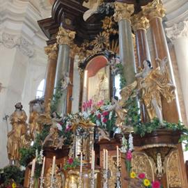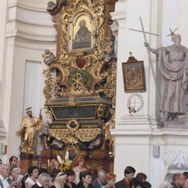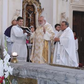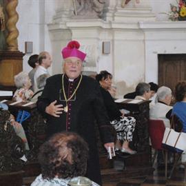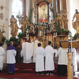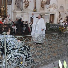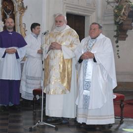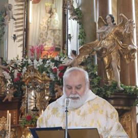poutní slavnost u příležitosti svátku Nanebevzetí Panny Marie (15. srpna); neděle 14. srpna 2016; koncelebrovaná mše svatá s P. Augustinem Prokopem OP, představeným kláštera dominikánů v Jablonném v Podještědí, a J.M. can. Wernerem Horákem, lounským děkanem a kapitulním kanovníkem; klášterní kostel Nanebevzetí Panny Marie, Dolní Ročov