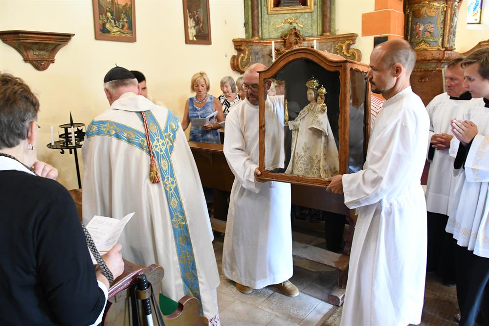 V sobotu 6. července 2019 se od 10 hodin konala ve Mcelích v mladoboleslavském vikariátu mariánská poutní slavnost, při které byla požehnána zrestaurovaná mariánská soška. Pouť započala poblíž mcelské fary, kde místní farář R.D. Lukáš Hrabánek přivítal generálního vikáře Mons. Martina Davídka. Odtud se procesí se soškou vydalo do mcelského kostela sv. Václava. Zde se konala poutní mše svatá na jejímž závěru byla soška znovupožehnána a slavnostně instalována v interiéru kostela. Závěrečné agapé po skončení mše svaté se konalo ve farním areálu.