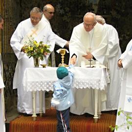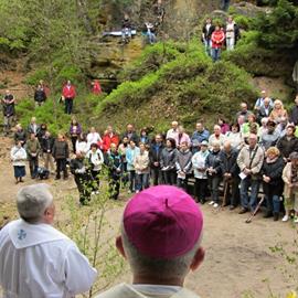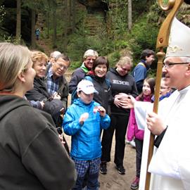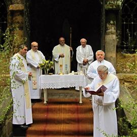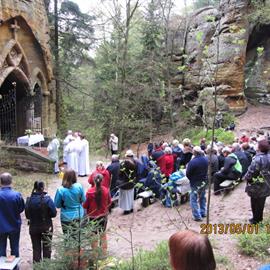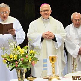 poutní mše sv., zahájení mariánského měsíce, litoměřický biskup Jan Baxant, místní děkan P. Josef Pavlas SDB (Nový Bor) a hosté, 1. května 2013, Modlivý důl u Svojkova