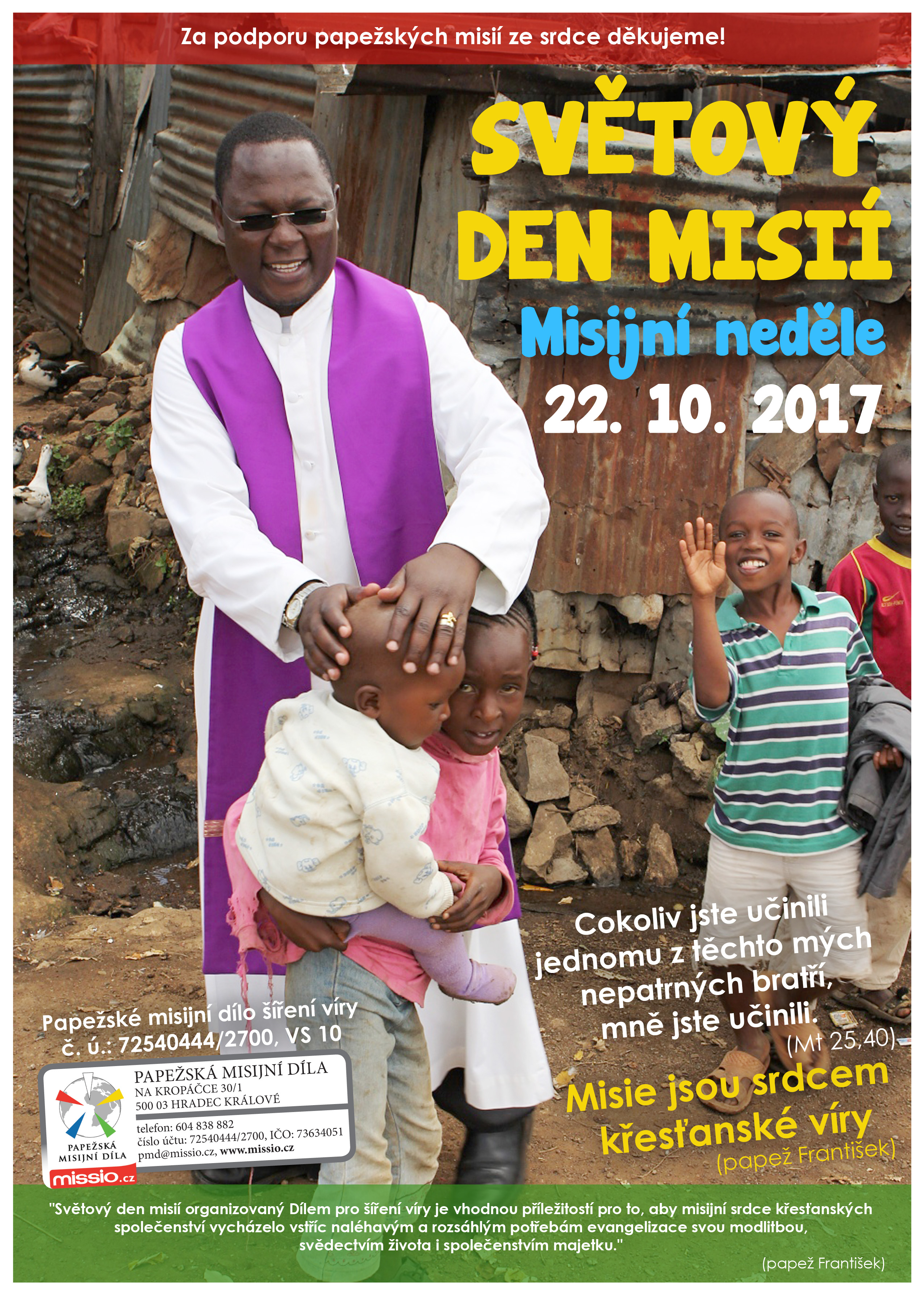 Misijní neděle letos připadá na 22. října (2017). Tento celosvětový den modliteb za misie je spojen s nabídkou různých akcí i finanční sbírkou na podporu projektů pro ty nejpotřebnější. V roce 2016 se v litoměřické diecézi ve sbírce na misie vybralo 441.826 Kč. Děkujeme.