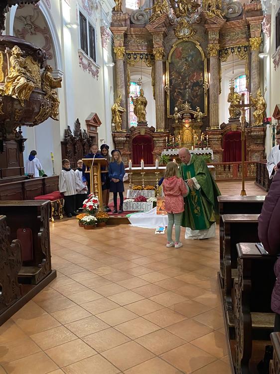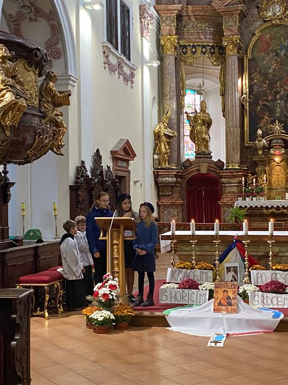 V neděli 22. října 2023 proběhla v děkanském kostele Všech svatých v Litoměřicích, tak jako na mnoha místech litoměřické diecéze i po celém světě, Misijní neděle. Děti z Misijního klubka ve spolupráci s rodiči se podílely nejen na liturgii, ale i na programu této neděle, kdy církev prožívá Světový den misií. Patří jim veliký dík za to, že myslí na přátele v misijních oblastech, kteří jsou sice vzdálení, ale ne zapomenuti. Další informace o misiích lze najít na webu Papežských misijních děl: https://www.missio.cz/