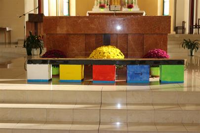 (modlitba, oběť, služba, tvořivost). Tento most byl pak před oltářem na misijní