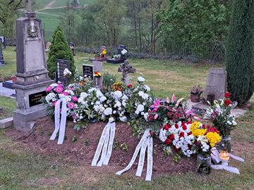 V sobotu 13. května 2023 jsme se rozloučili s otcem Františkem Segeťou. Po zasypání hrobu byly na jeho vrchol umístěny květiny se stuhami připomínající ty, kteří na zesnulého kněze vzpomínají. RiP!