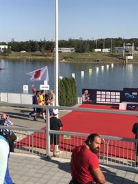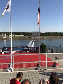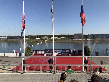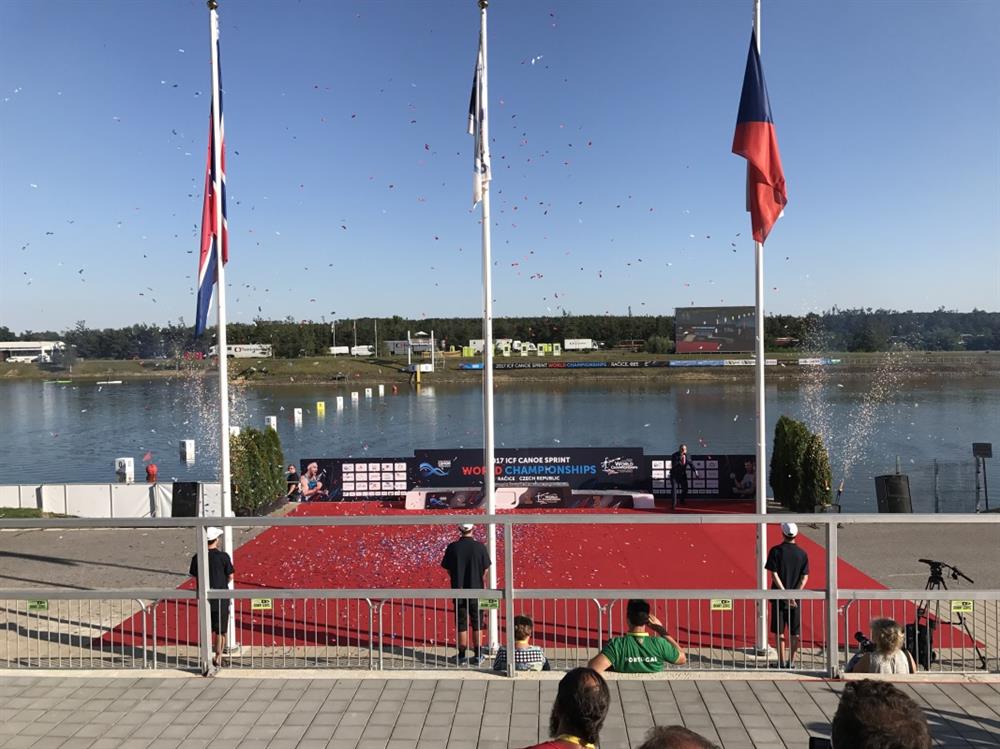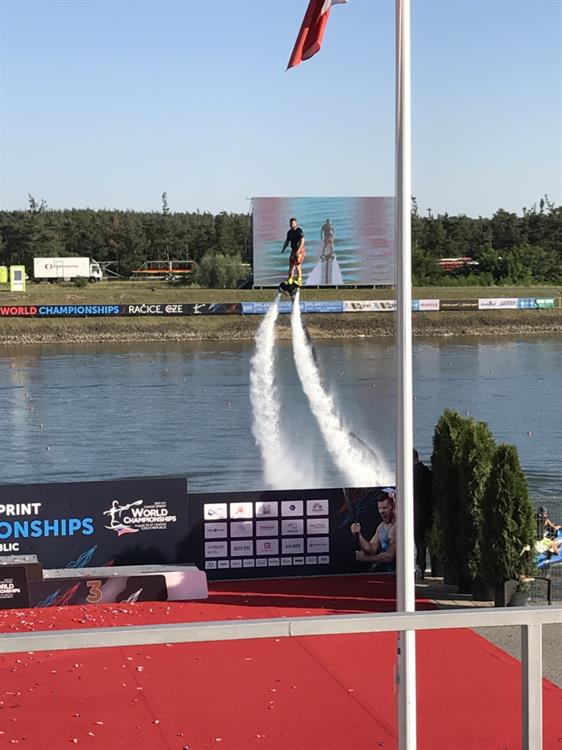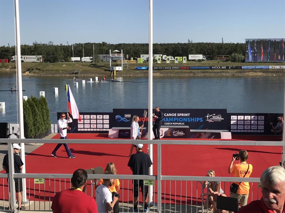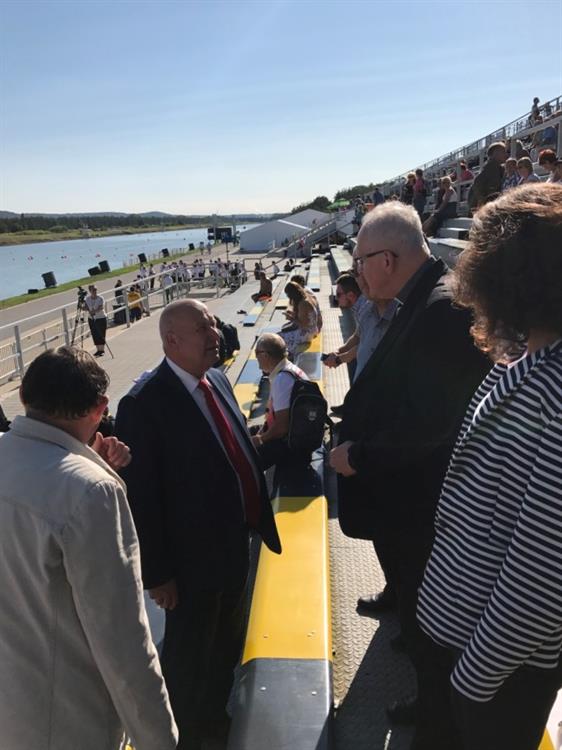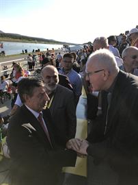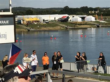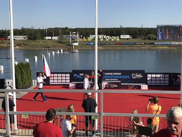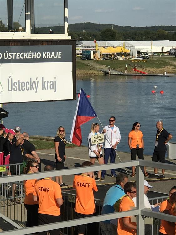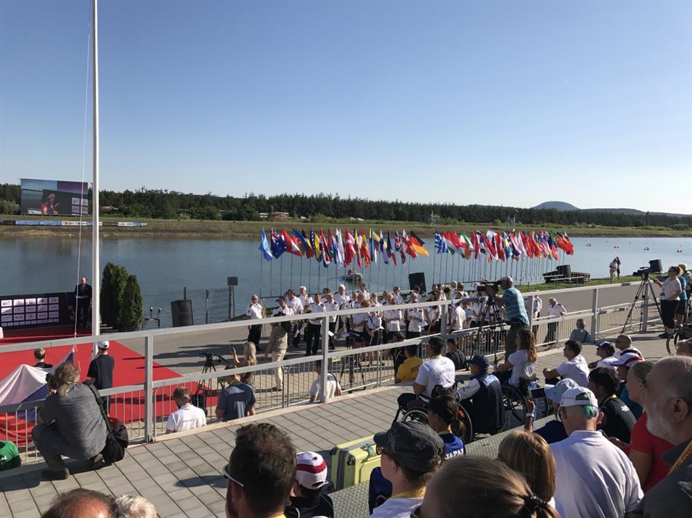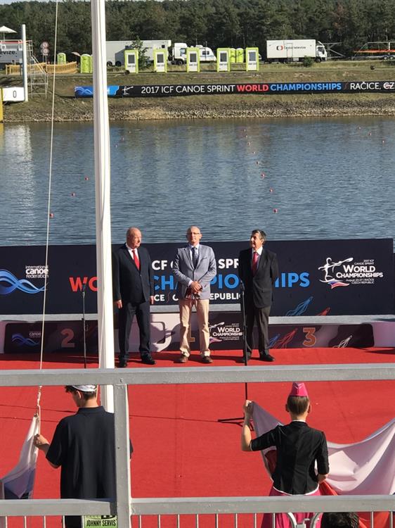 Slavnostní zahájení Mistrovství světa v rychlostní kanoistice (23.–27. 8. 2017), jehož hostem byl litoměřický biskup Mons. Jan Baxant, slavnost za účasti hejtmana Ústeckého kraje Oldřicha Bubeníčka, předsedy Českého svazu kanoistů Jana Boháče, předsedy Mezinárodní kanoistické federace ICF José Perureny Lopéze a dalších významných hostů (mj. litoměřického senátora MUDr. Hassana Meziana), 23. srpna 2017, Labe aréna, Račice