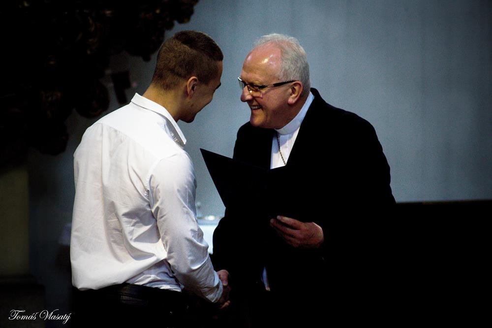 Mons. Baxant předával maturitní vysvědčení na biskupském gymnáziu v Bohosudově