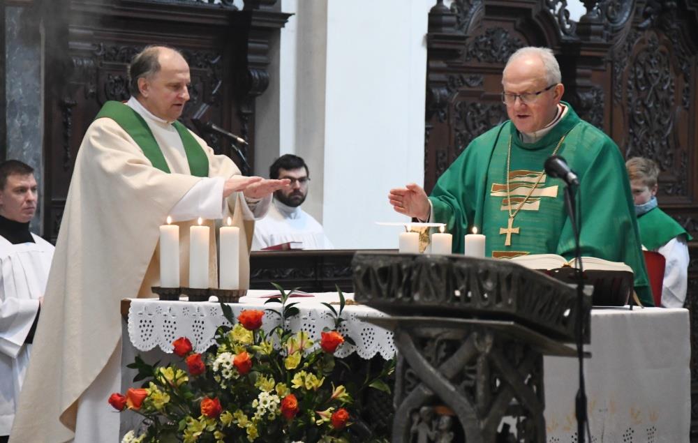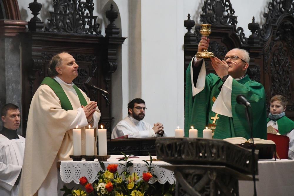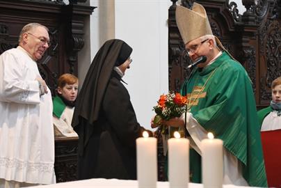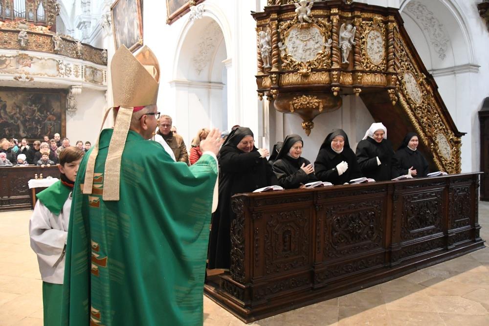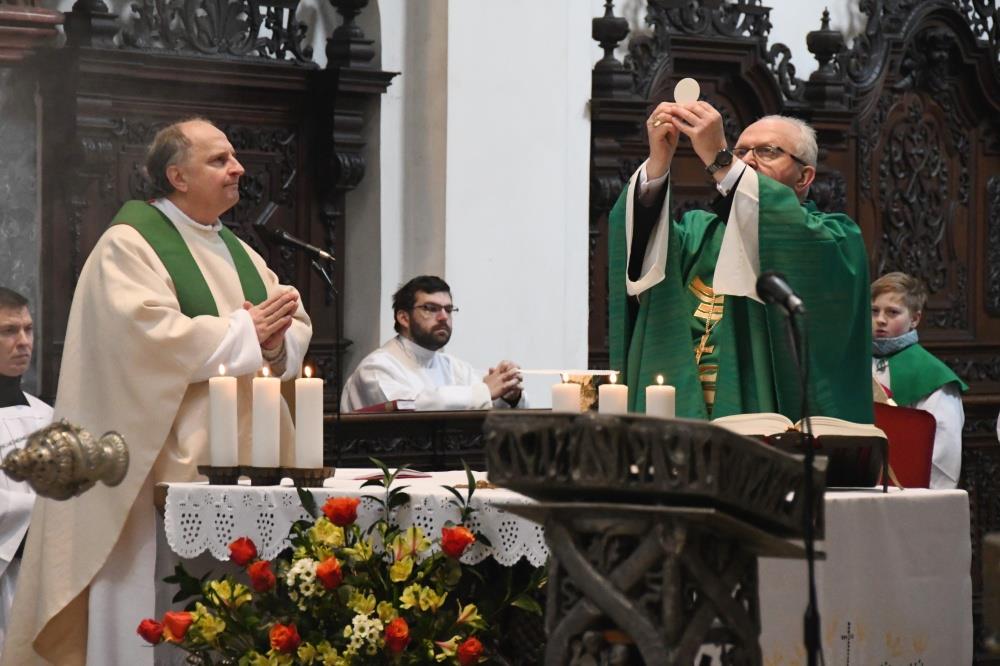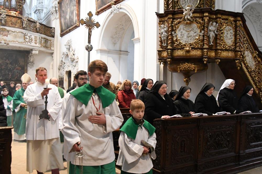 20 let obnovy řeholního života sester premonstrátek v Doksanech, děkovná mše svatá s Mons. Janem Baxantem, biskupem litoměřickým, a P. Pavlem Adriánem Zemkem O.Praem., duchovním správcem farnosti, 28. ledna 2018, klášterní kostel Narození Panny Marie, Doksany