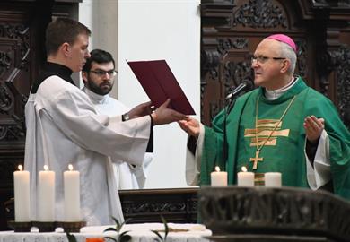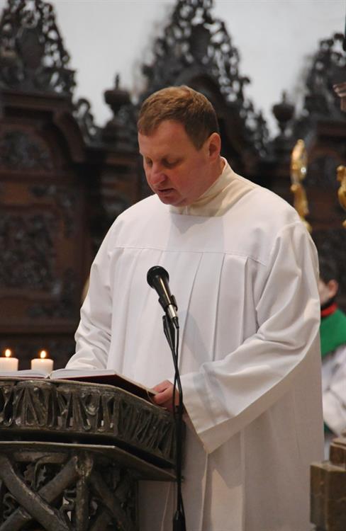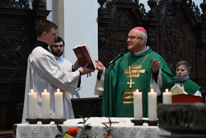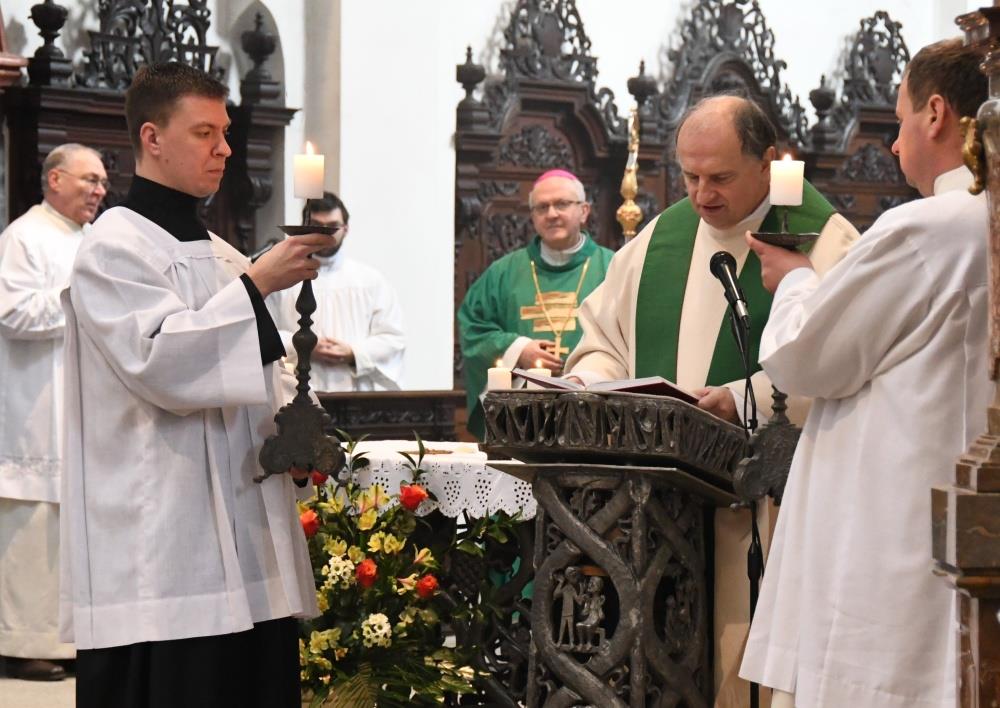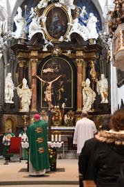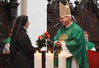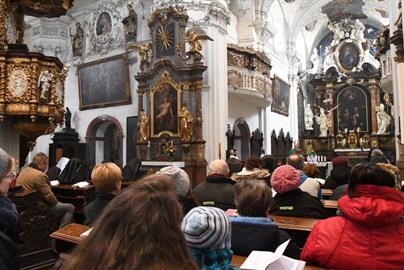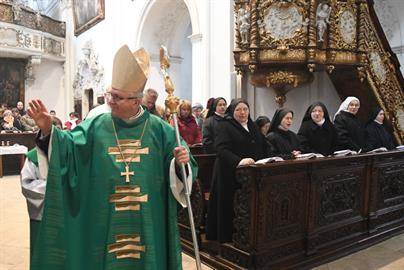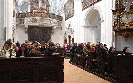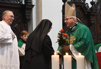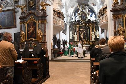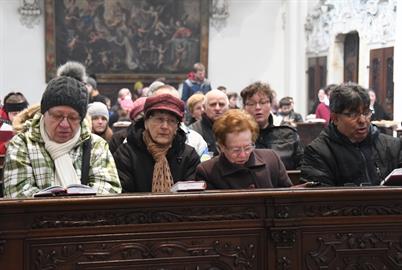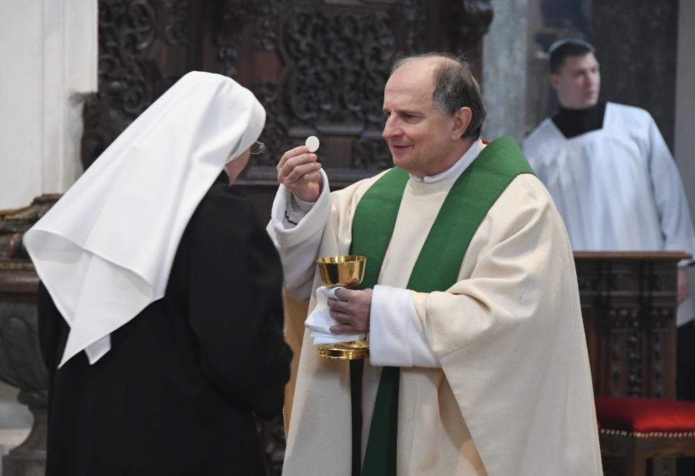 20 let obnovy řeholního života sester premonstrátek v Doksanech, děkovná mše svatá s Mons. Janem Baxantem, biskupem litoměřickým, a P. Pavlem Adriánem Zemkem O.Praem., duchovním správcem farnosti, 28. ledna 2018, klášterní kostel Narození Panny Marie, Doksany