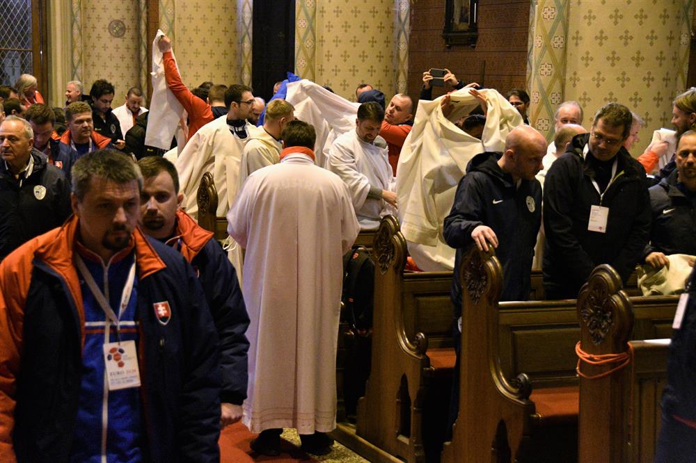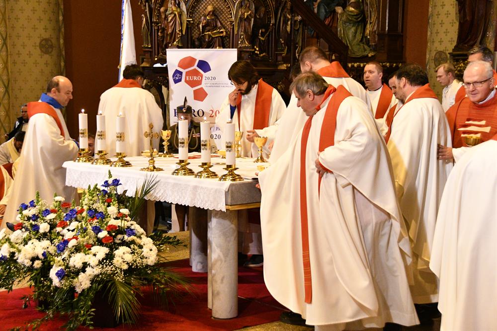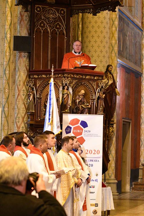 Mše svatá na zahájení 14. evropského šampionátu kněží sportovců v halovém fotbale