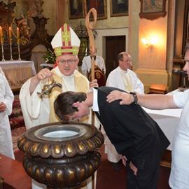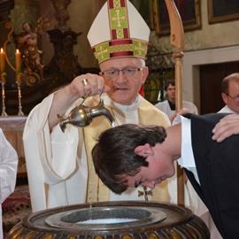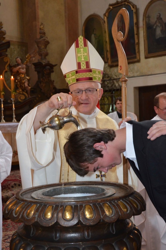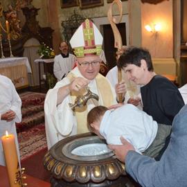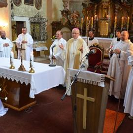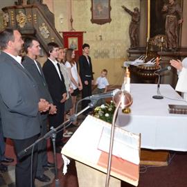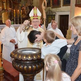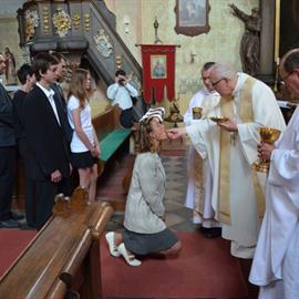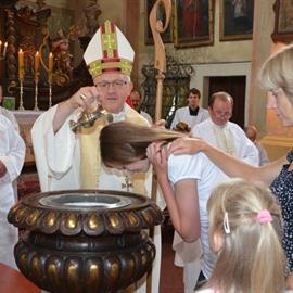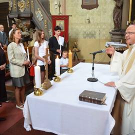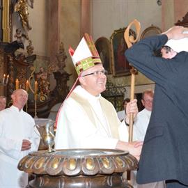 mše svatá s udílením svátosti křtu, litoměřický biskup Mons. Jan Baxant, 25. srpna 2012, kostel sv. Ducha, Libáň