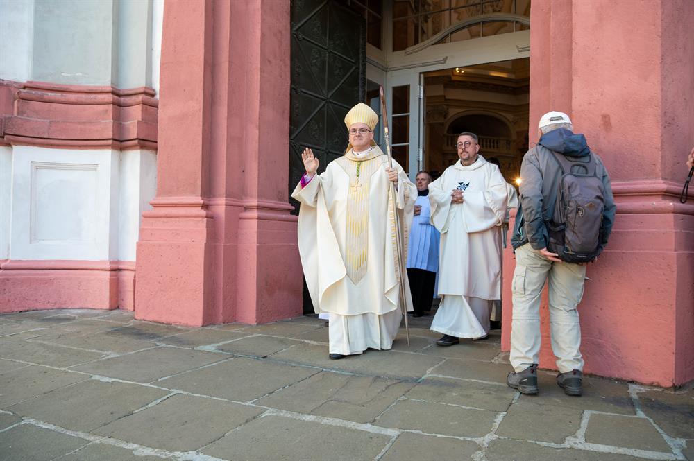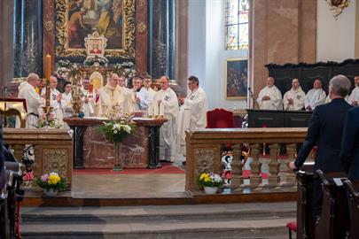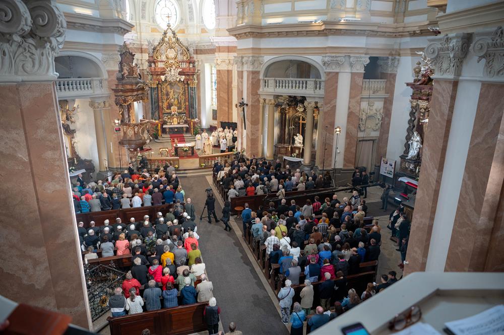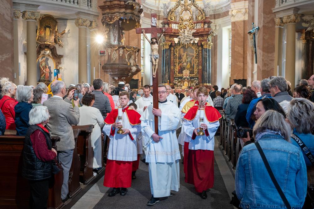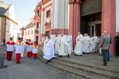 Mše svatá v opravené bazilice v Jablonném v Podještědí