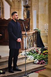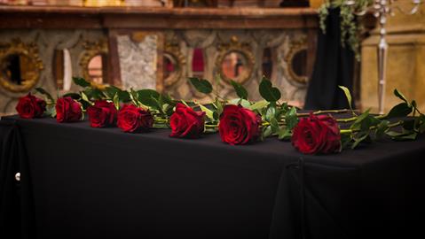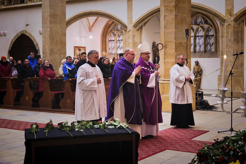Před oltářem stál už před mší svatou černě potažený stůl a na něm sedm růží, symbolizujících oběti neštěstí. Lidé tam přinášeli květinové dary, vzkazy a drobnosti, které pak město přesune na hřbitov na pietní místo.
