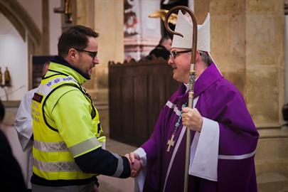 Biskup Stanislav Přibyl ocenil práci lidí z integrovaného záchranného systému. Po bohoslužbě pak zvláště poděkoval Patriku Christianu Cmorejovi, vedoucímu zásahu zdravotníků.