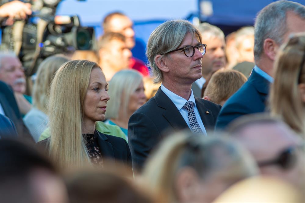 Na náměstí dorazili také představitelé státu a veřejného života. Přítomen byl prezident republiky Petr Pavel, bývalý prezident Václav Klaus, předseda Senátu Miloš Vystrčil, další senátoři a poslanci, dále zástupci armády a velvyslanci. Poutníky i hosty přivítal na začátku bohoslužby starosta Robert Pecha.