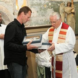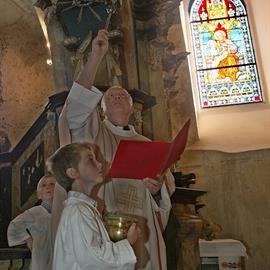 pastorační návštěva ve farnosti Křižany na Liberecku, setkání s německými rodáky a žehnání zrestaurovaných vitráží, sobota 3. září 2011, Křižany