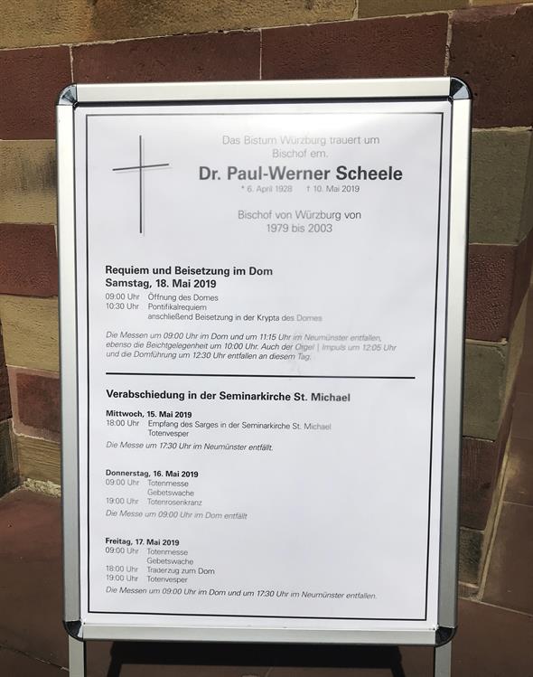 Paula-Wernera Scheeleho (†10. 5. 2019) ve würzburgské katedrále, který zde byl