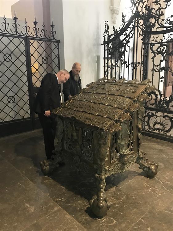 prohlédl město a přišel se pomodlit k hrobu zemřelého würzburgského biskupa