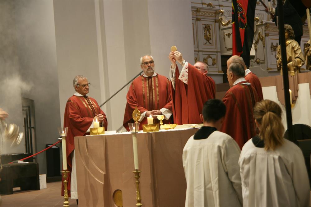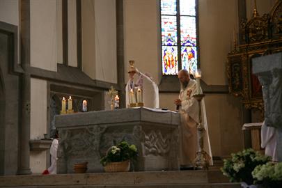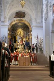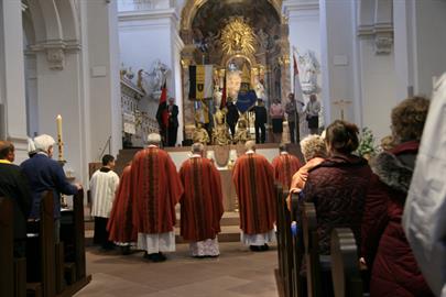 neumünsterském kostele sv. Jana Evangelisty a sv. Jana Křtitele mši svaté, po