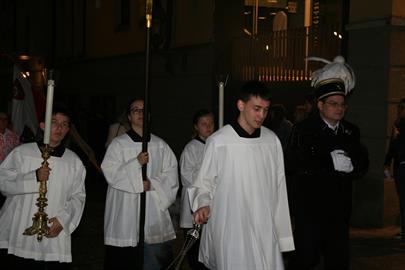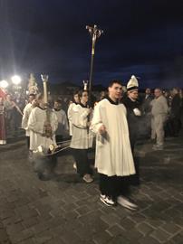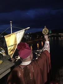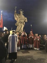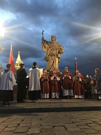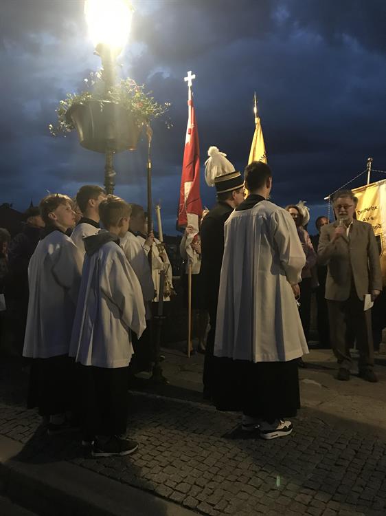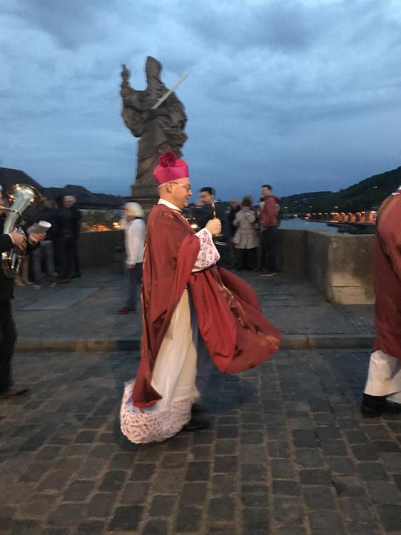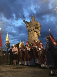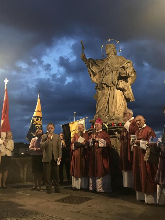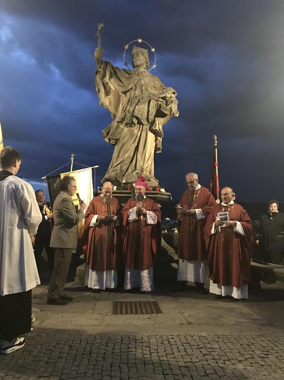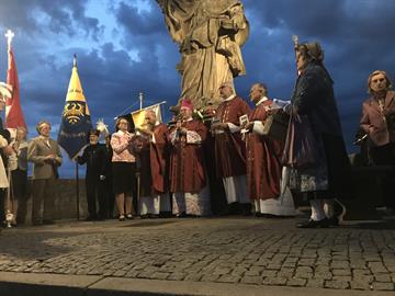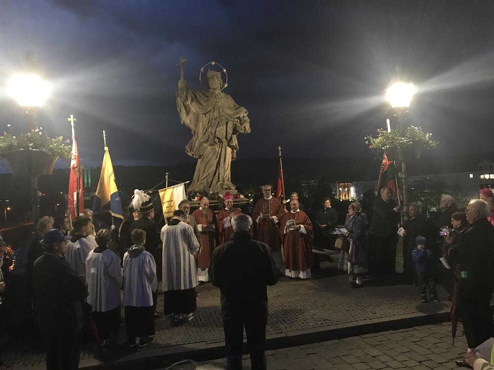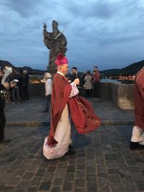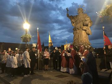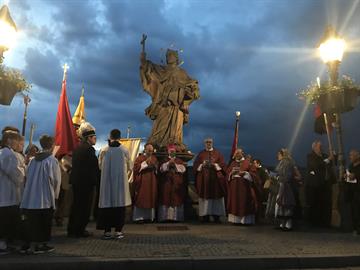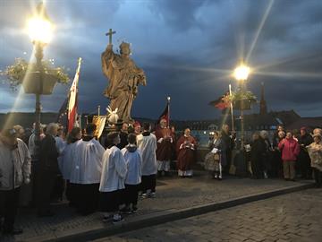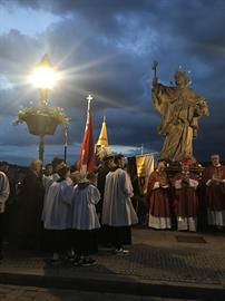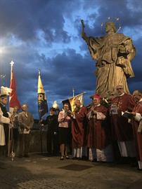 které se procesím vydal na most přes řeku Mohan, kde se nachází socha sv. Jana