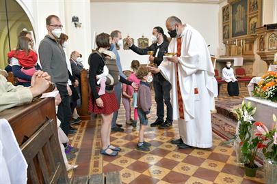 Na mnoha místech litoměřické diecéze se konají opožděné křestní obřady, které se pro pandemická opatření nemohla konat o velikonočních svátcích. Podobně tomu tak bylo v neděli 13. června 2021 v kostele Božského srdce Páně v Teplicích – Trnovanech. Farář P. Radomír Kuchař tam od 9:30 hodin celebroval mši svatou, při níž pokřtil čtyři věřící, tři z nich navíc přijali svátost biřmování. Kéž jim všem Bůh žehná při putování po jejich nové cestě s Kristem.