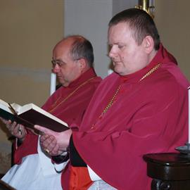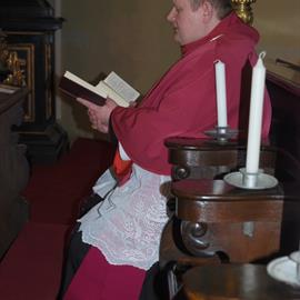 nešpory, kanovníci Katedrální kapituly u sv. Štěpána v Litoměřicích, den Slavnosti Zvěstování Páně (25. březen 2011), katedrála sv. Štěpána, Litoměřice