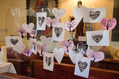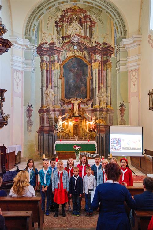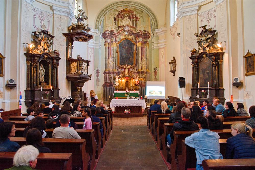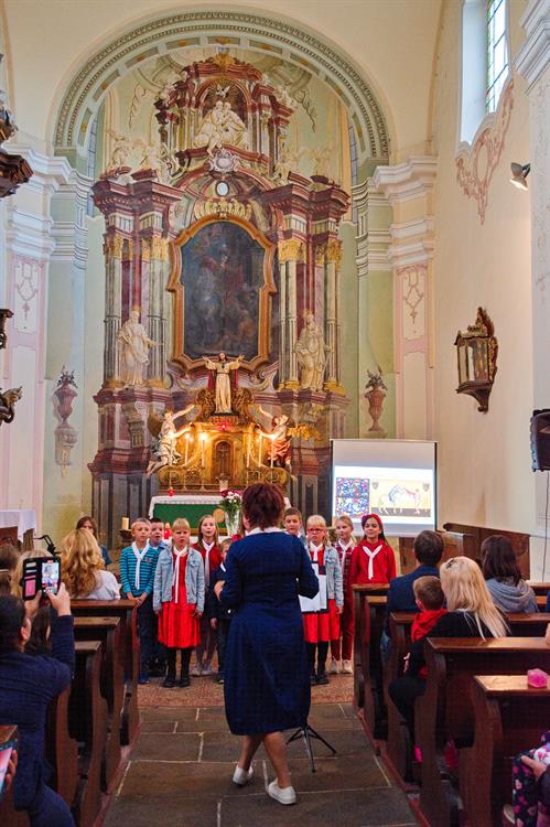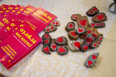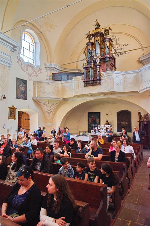 Návštěvníci si mohli prohlédnout interiéry kostela, které zdobily práce dětí ze školy, a mohli si odnést památku v podobě tematicky malovaného kamínku.