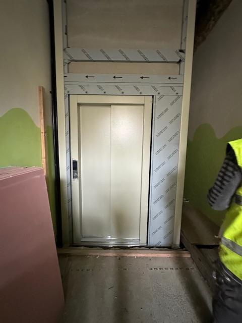 přístupová chodba. Ve druhé fázi byl vybudovaný výtah – jedná se o vestavbu,