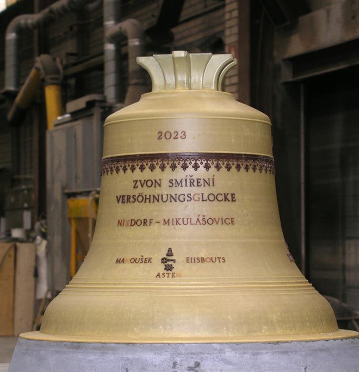 S radostí vám chceme oznámit, že nové zvony pro Mikulášovice jsou odlité. Zvony smíření byly odlity v minulých dnech v Astenu v Holandsku českou zvonařskou dílnou Manoušek. Rozpočet na nové zvony se vyšplhá přes jedem milion korun. Na nové zvony jsme dostali dotaci 250 000 Kč od Českoněmeckého fondu budoucnosti, 250 000 Kč a 200 000 Kč jsou přislíbené od dárců. Veřejnou sbírkou se podařilo zatím získat něco málo přes 100 000 Kč. Děkujeme všem, kteří nás podpořili i těm co náš ještě podpoří. Číslo účtu: 123-9742080207/0100 https://www.kb.cz/cs/transparentni-ucty/123-9742080207