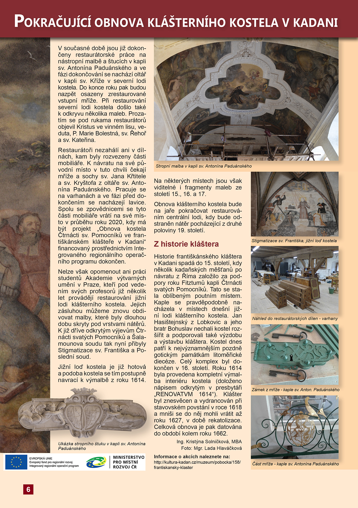 Diecézní časopis Zdislava, č. 5/2020, str. 6 a 7, Obnova klášterního kostela v Kadani z programu IROP v roce 2020, autorka Mgr. Lada Hlaváčková